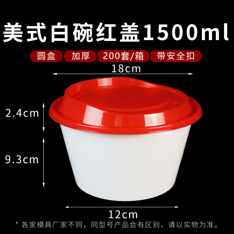 1500ml round white bowl red convex cover 200 sets