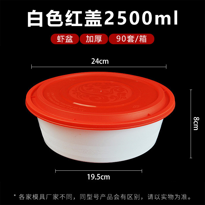 2500ml round white bowl red cover 90 sets
