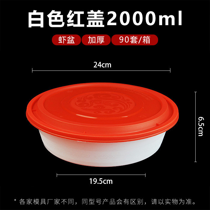 2000ml round white bowl red cover 90 sets