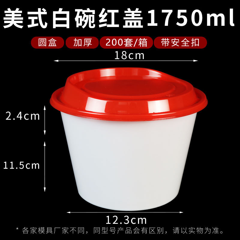 1750ml round white bowl red convex cover 200 sets