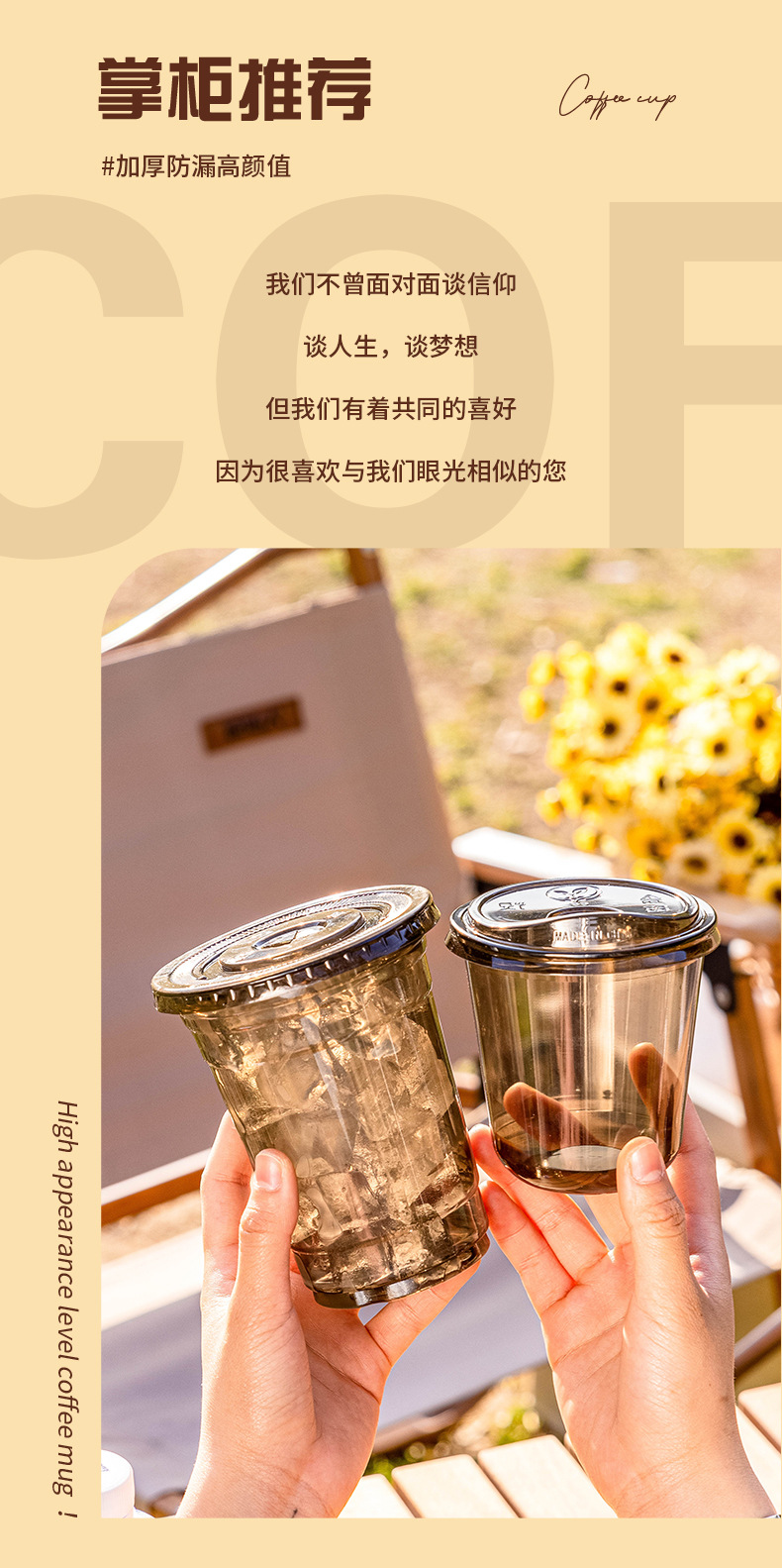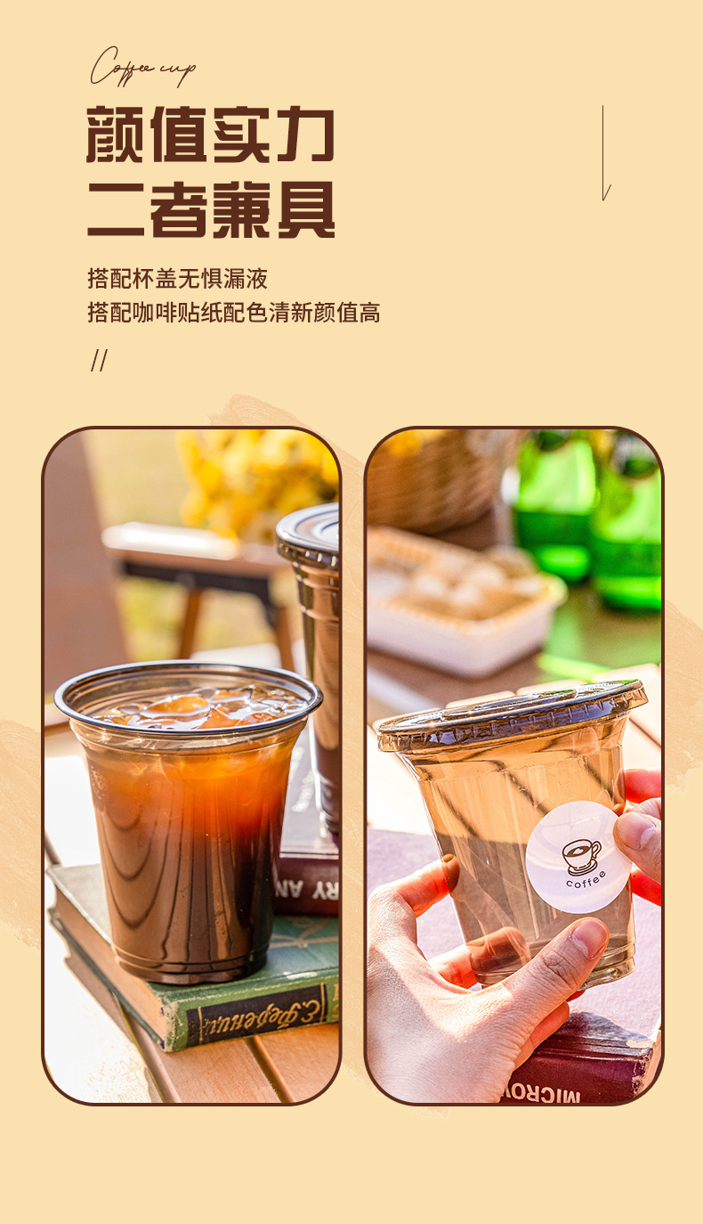 500u coffee cup (transparent + straight drink cap) * 20 pcs