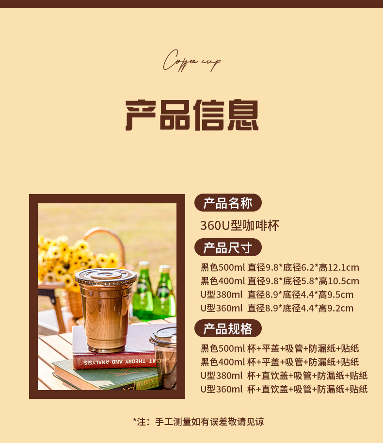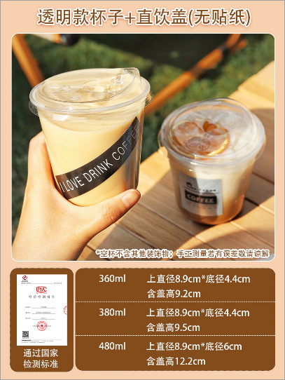 360u coffee cup (transparent + straight drink cap) * 50 pcs