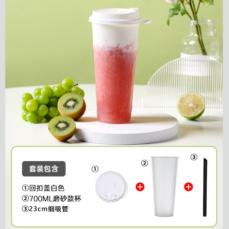 90-700ml small emotion frosted packaging cup + white one-piece cover + thin straw-50 sets