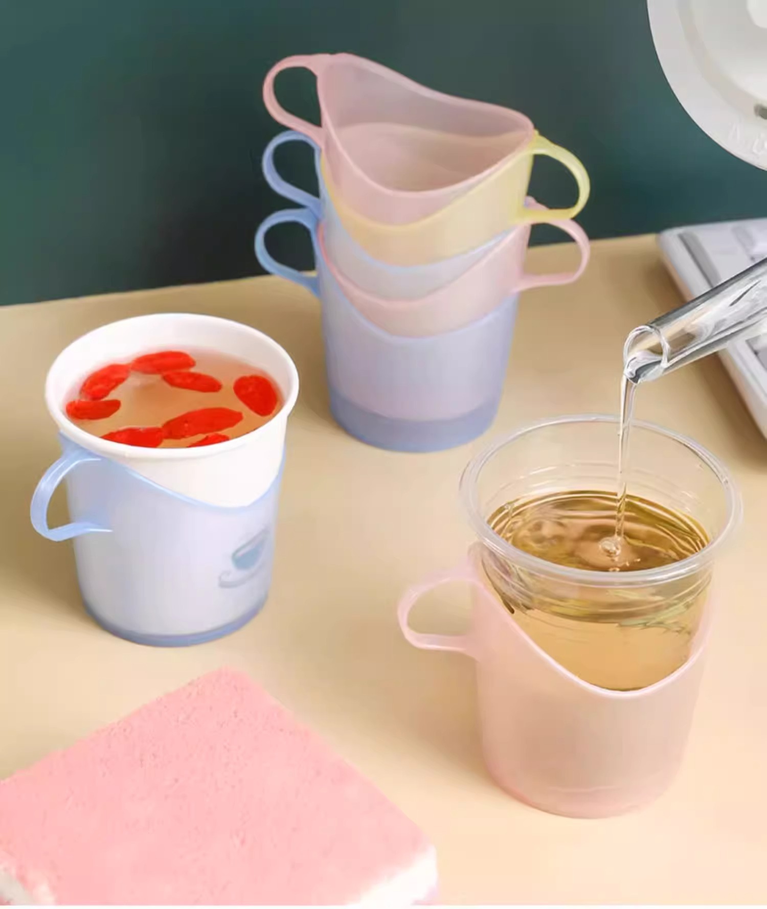 disposable cup saucer [thickened 10 packs] simple assorted color