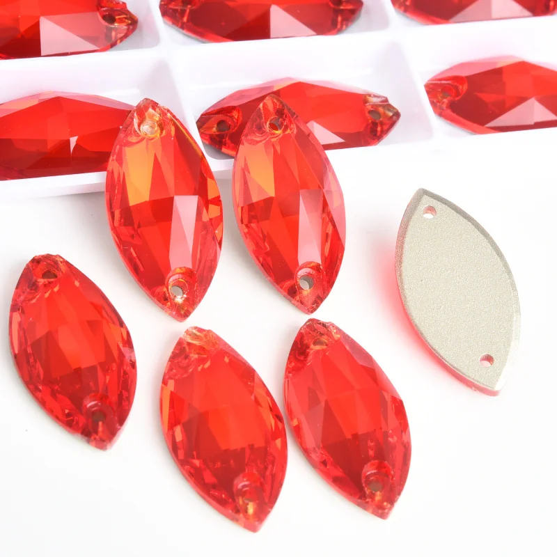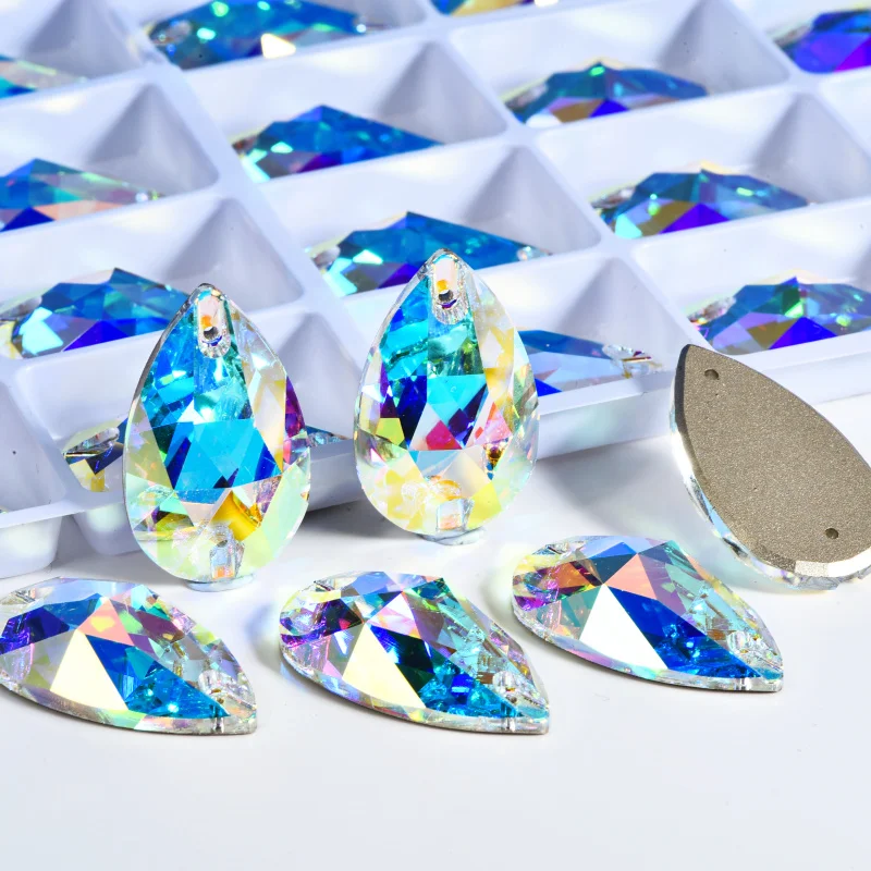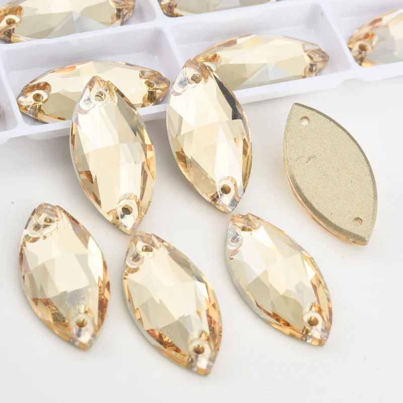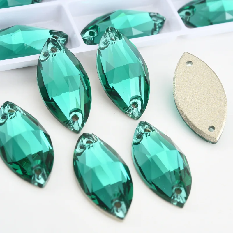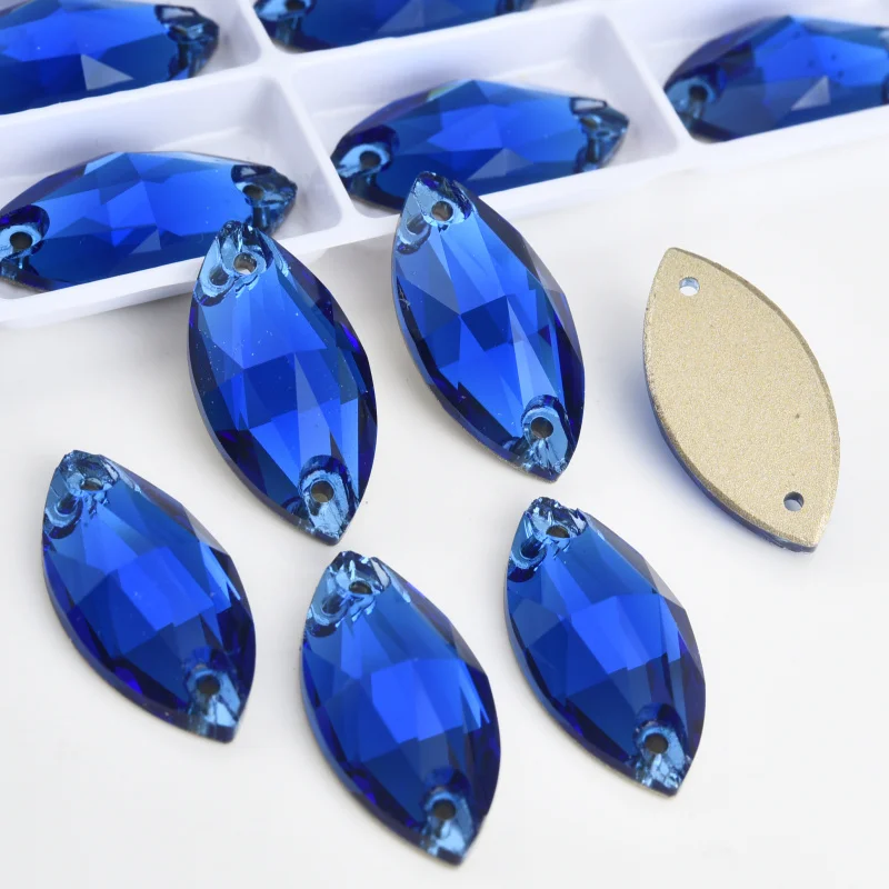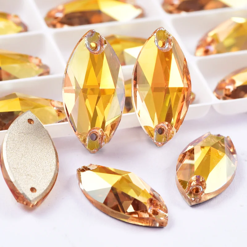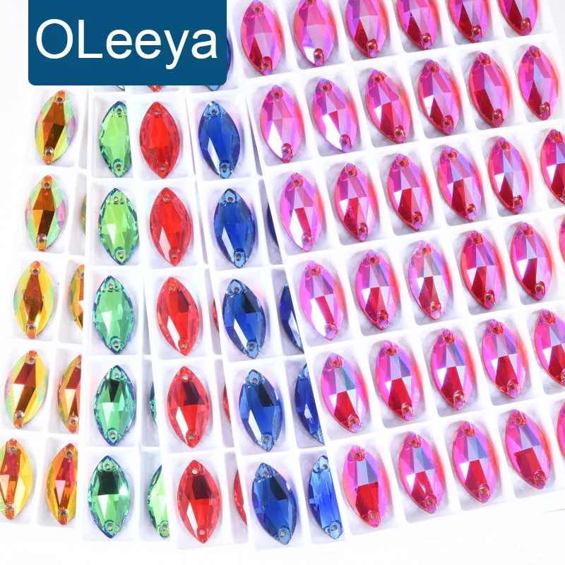 Product Item name | Oleeya Factory Top Quality 5A Bevel Glass Crystal AB Navette Flat Back Coloful Sew on Rhinestones Buttons For Dress