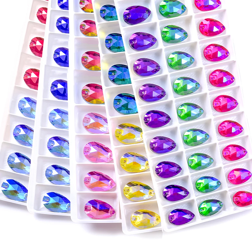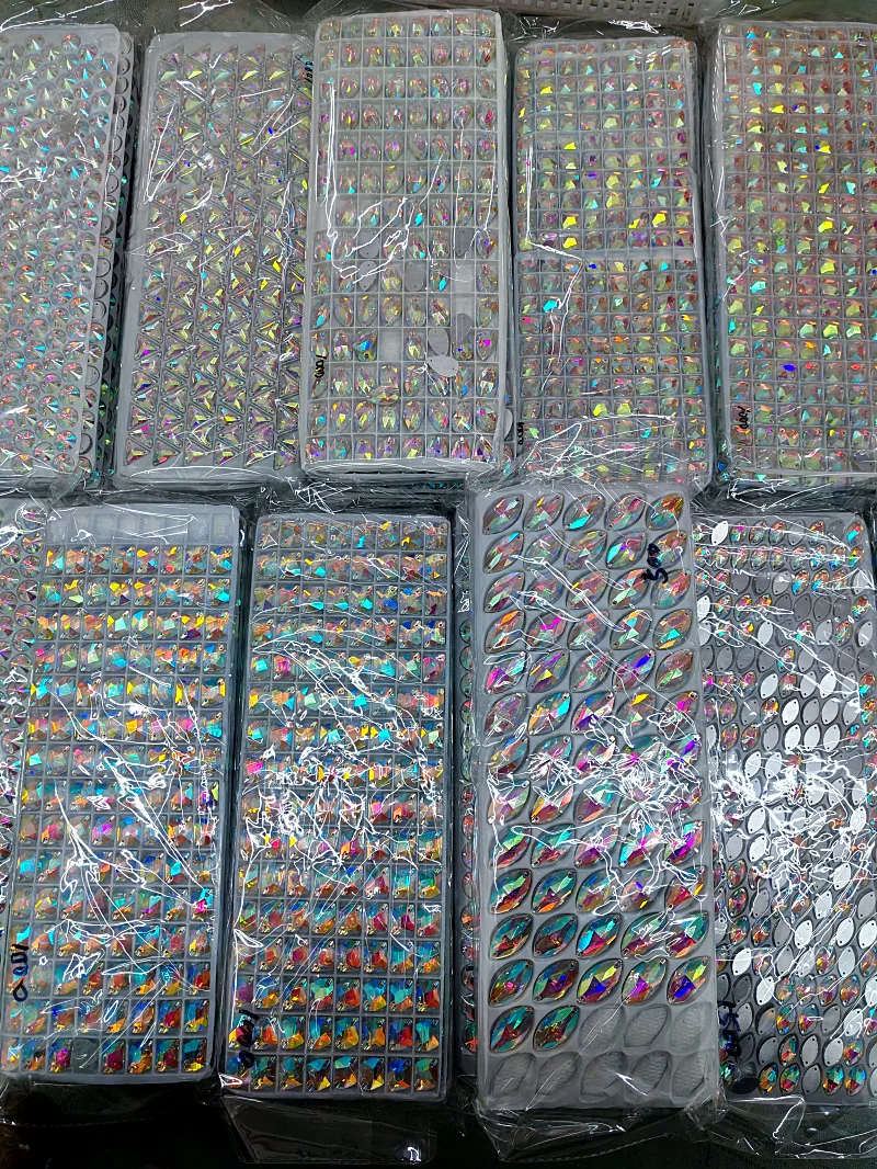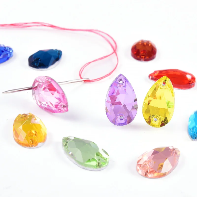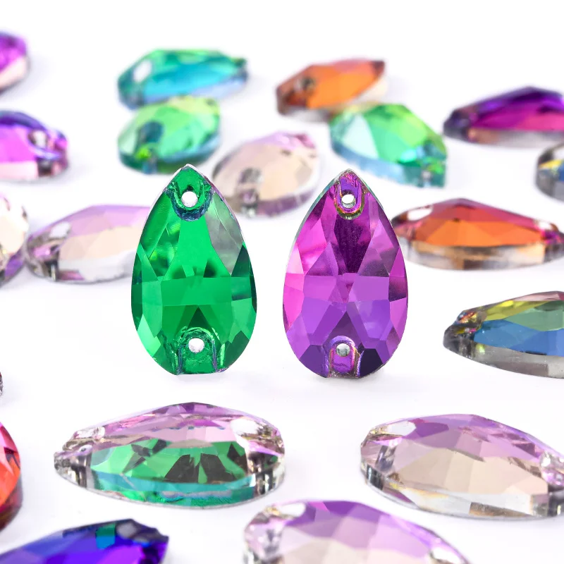 A: There are different qualities sew on rhinestones. Some have holes on the sides or in the middle of the rhinestones. Although sew-on rhinestones can be labor intensive and time consuming, the advantage of sewing method is that these flat rhinestones can strongly attached to fabric and won’t fall off easily.
