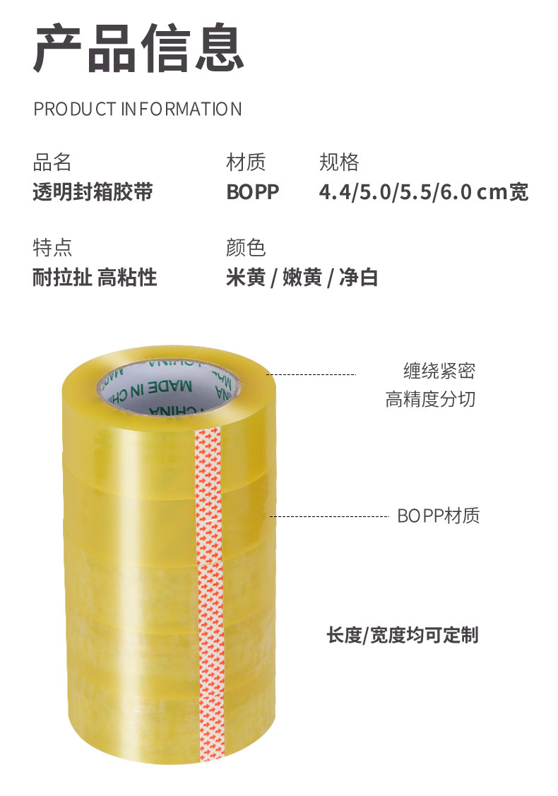 transparent yellow [full box cutter]; width 5.5/thickness 3.1/length 220/box 20 rolls transparent