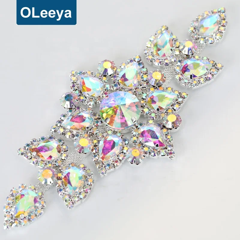 | Product Name | Wholesale crystal sew on rhinestone corsages with silver base sewing appliques for clothing and dresses |
