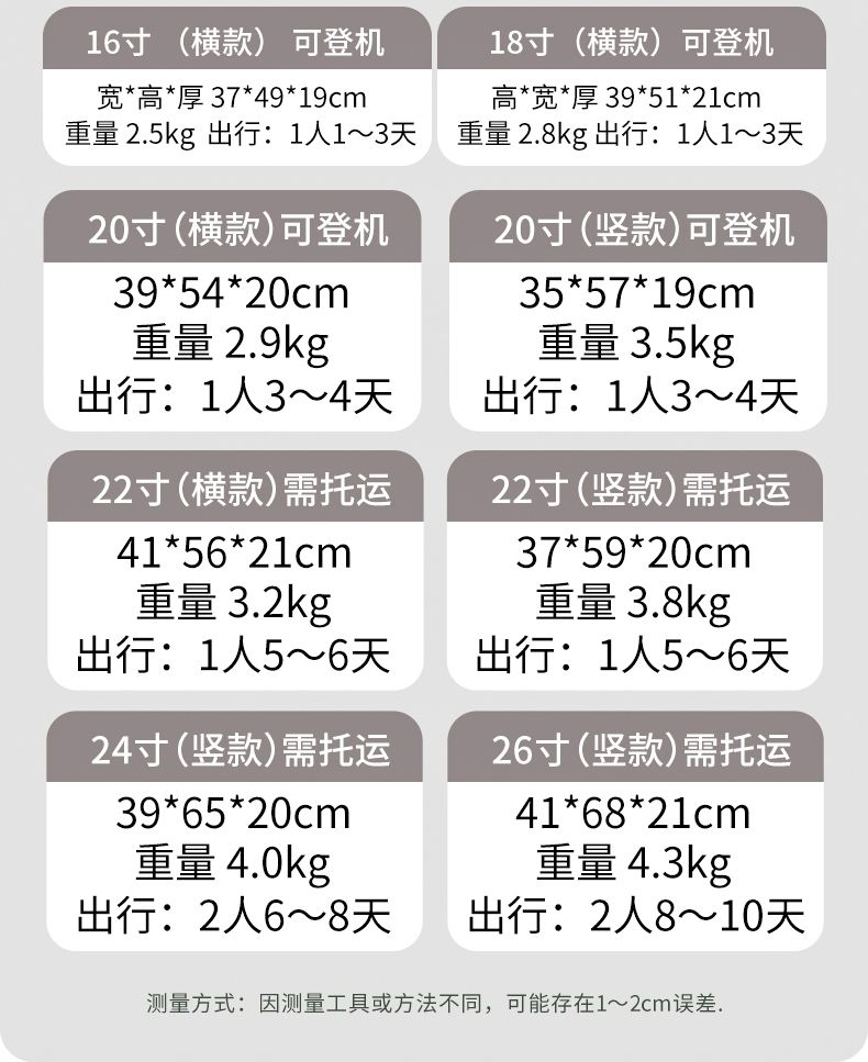| 20-inch [horizontal] short-term travel for one person | ¥183.17 | 999999 piece available |