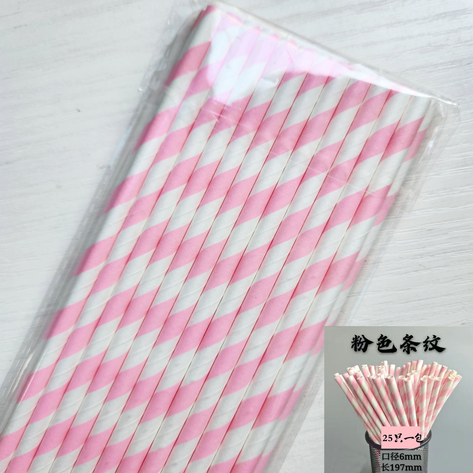 black striped straw 25 pieces per pack