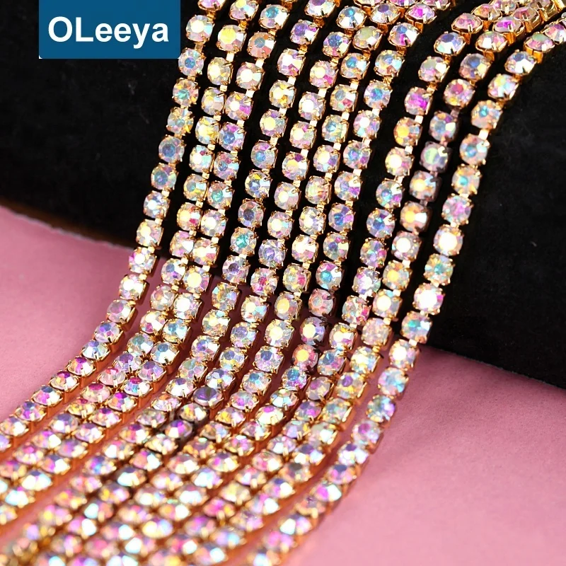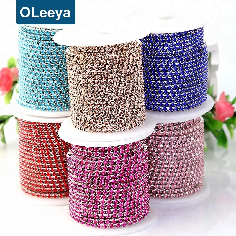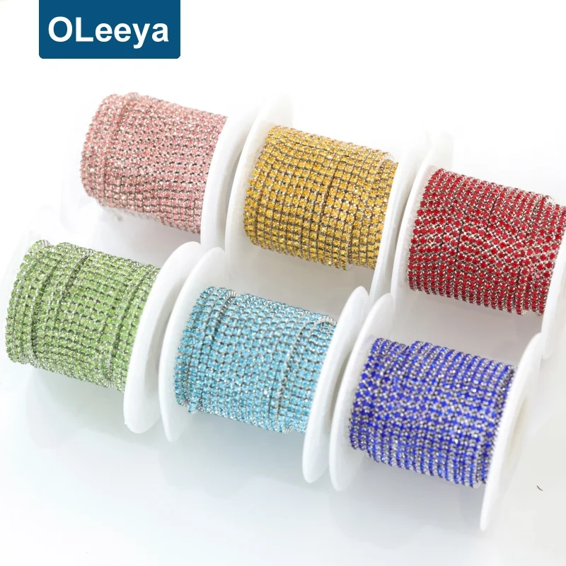 Colorful Rhinestone Chains SS12 3mm Silver Base Over 25 Kinds Of Color Crystal AB Rhinestone Cup Chain For Wedding Dress
