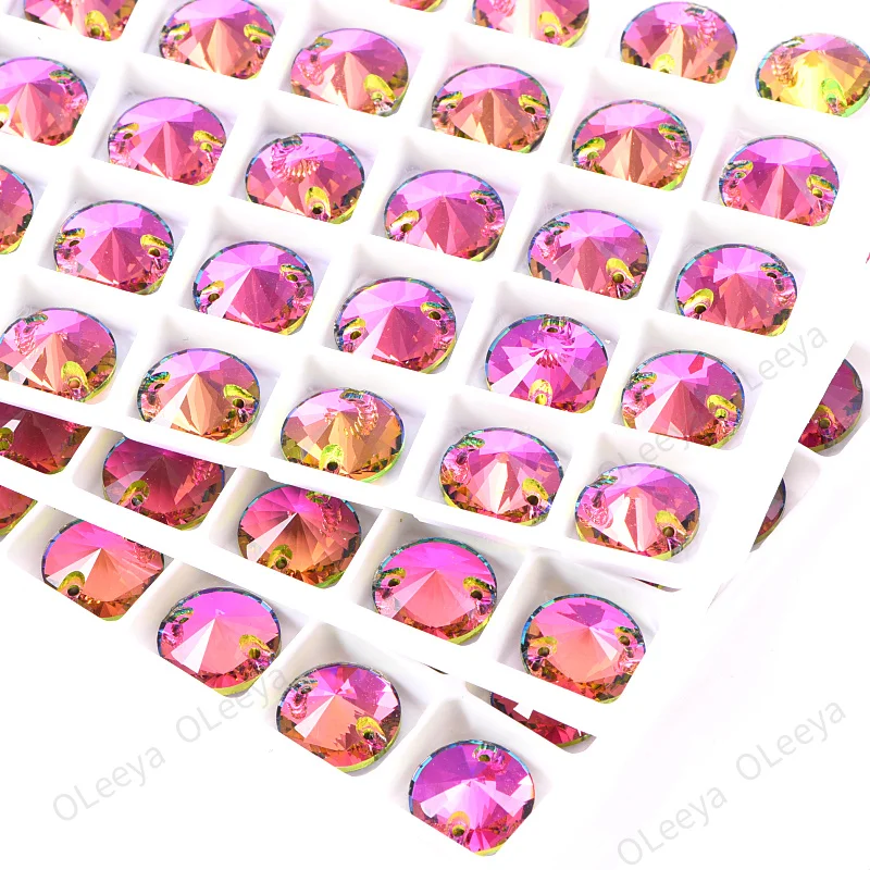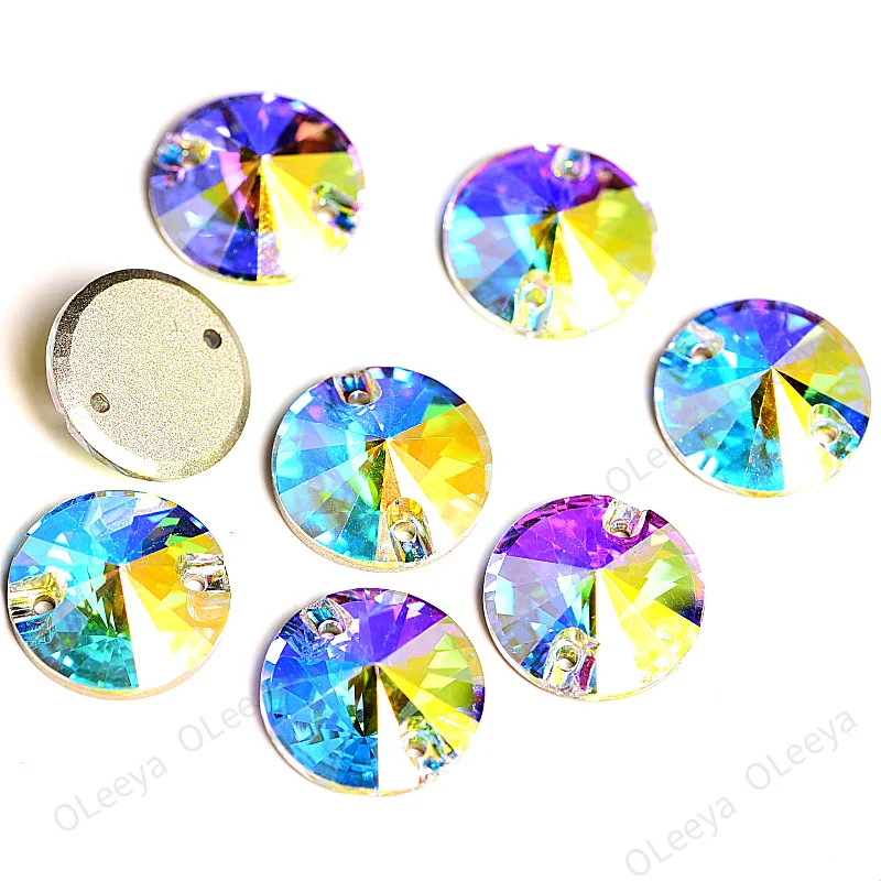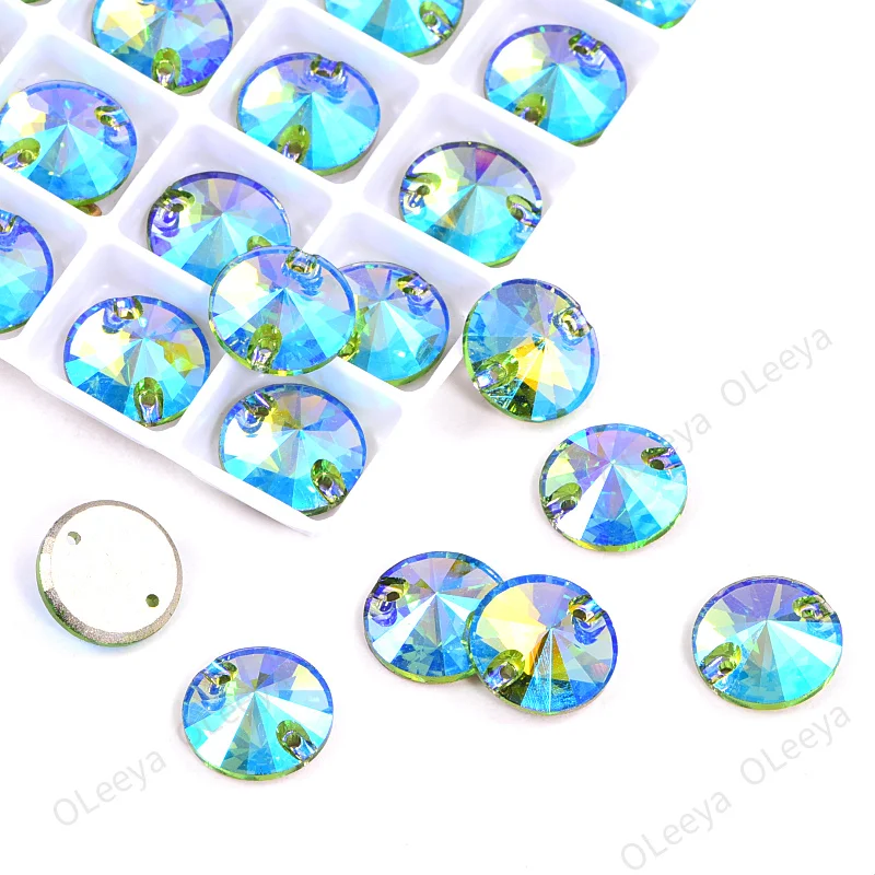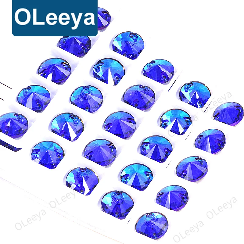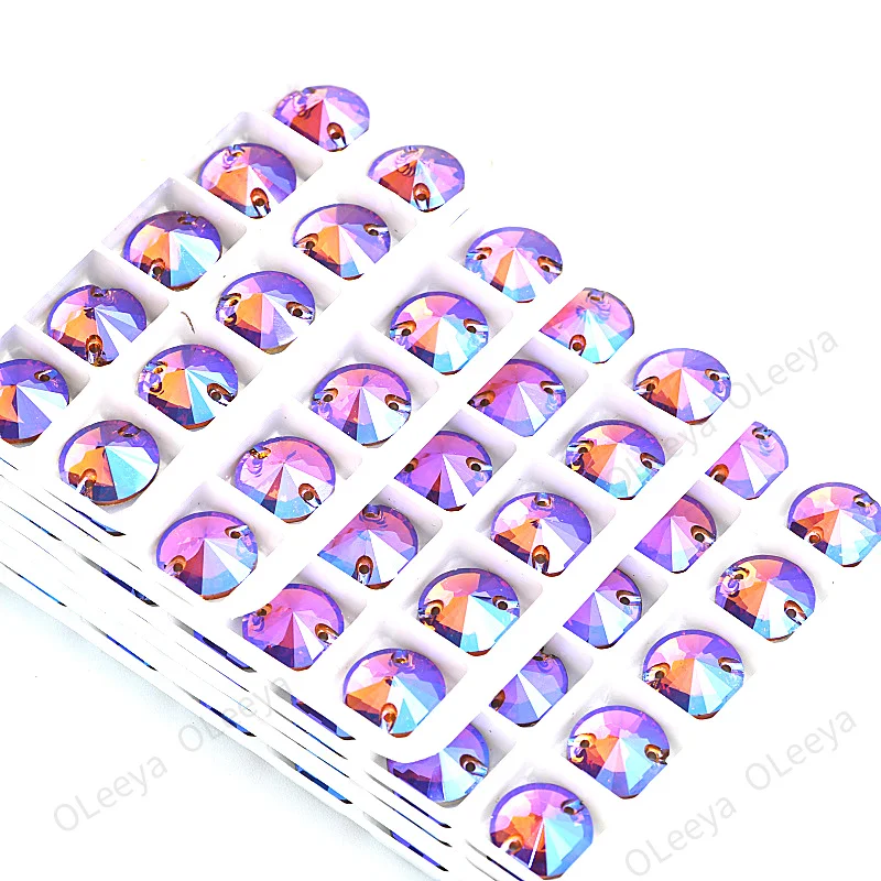 Oleeya Factory Violet Blue Color 12mm All Size Round Rivoli Flat Back Glass Crystal AB Sewing Rhinestone for Clothing DIY