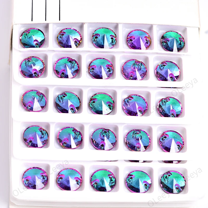 Oleeya Factory Hot Sale 5A Bevel Top Quality All Size Round Rivoli Glass Crystal AB Sew On Rhinestone Flat Back For Clothing DIY