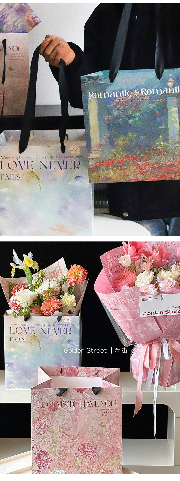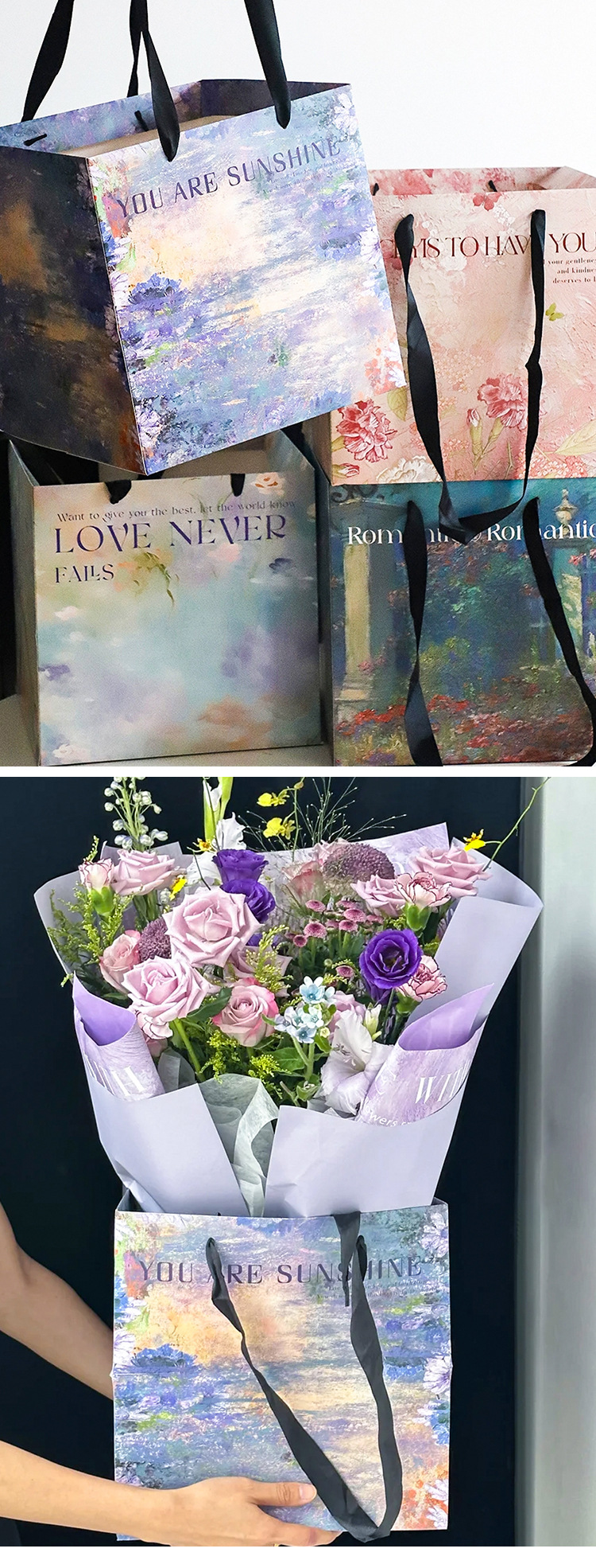 new gift tote bag; bouquet tote bag