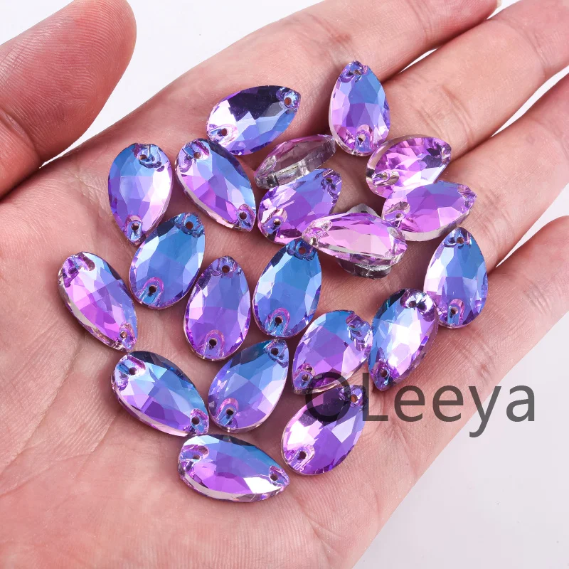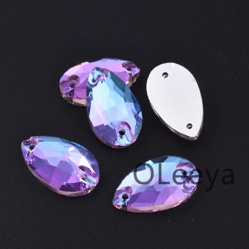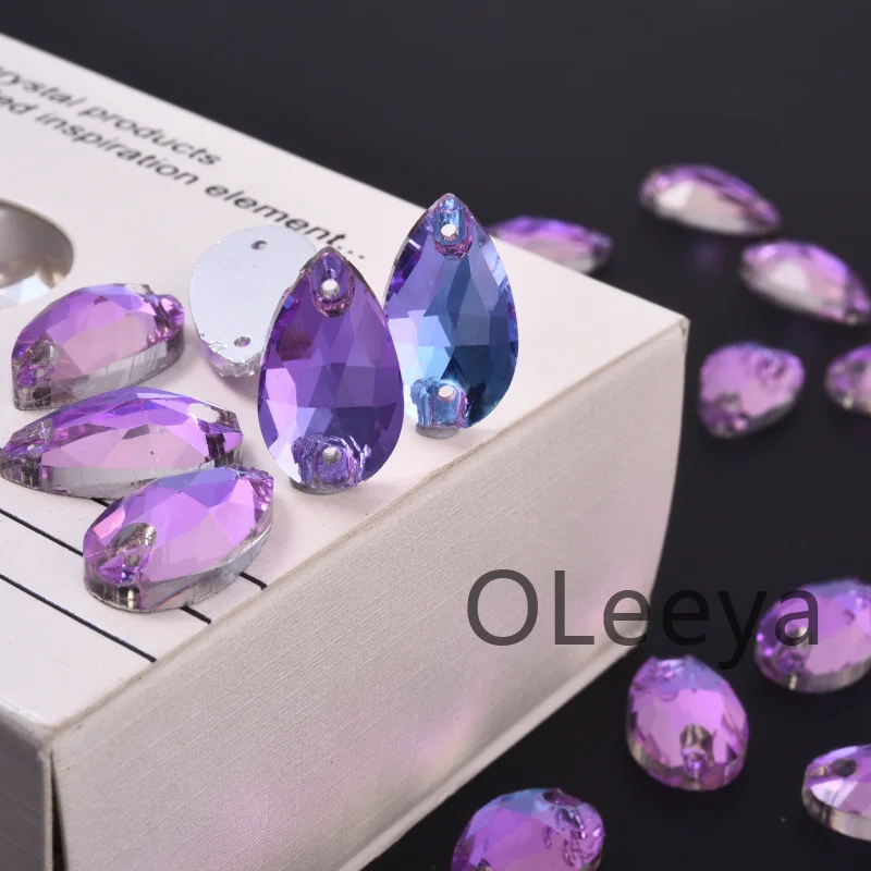 OLeeya Good Quality Glass Sew on Rhinestones Violet Pink Blue Series Bikini Strass Decoration Crystals for Leotards Dance Dress