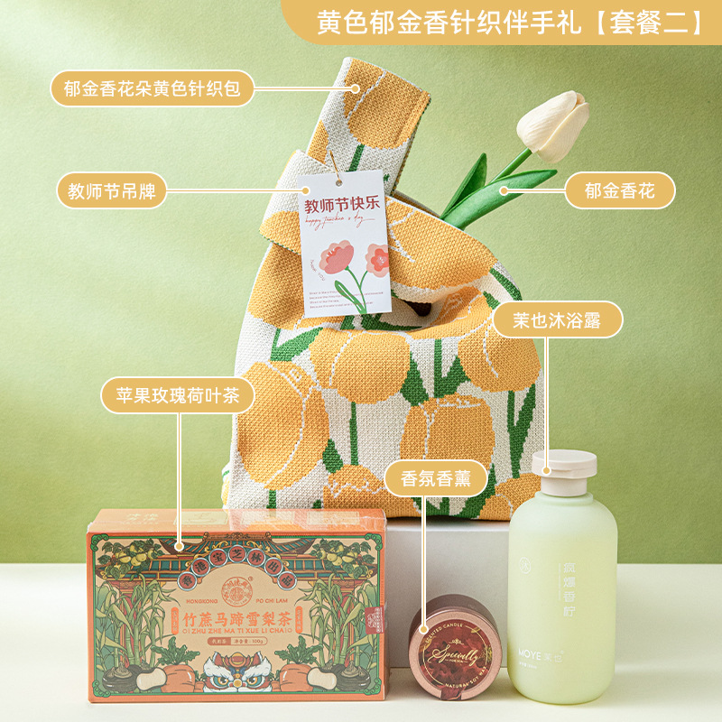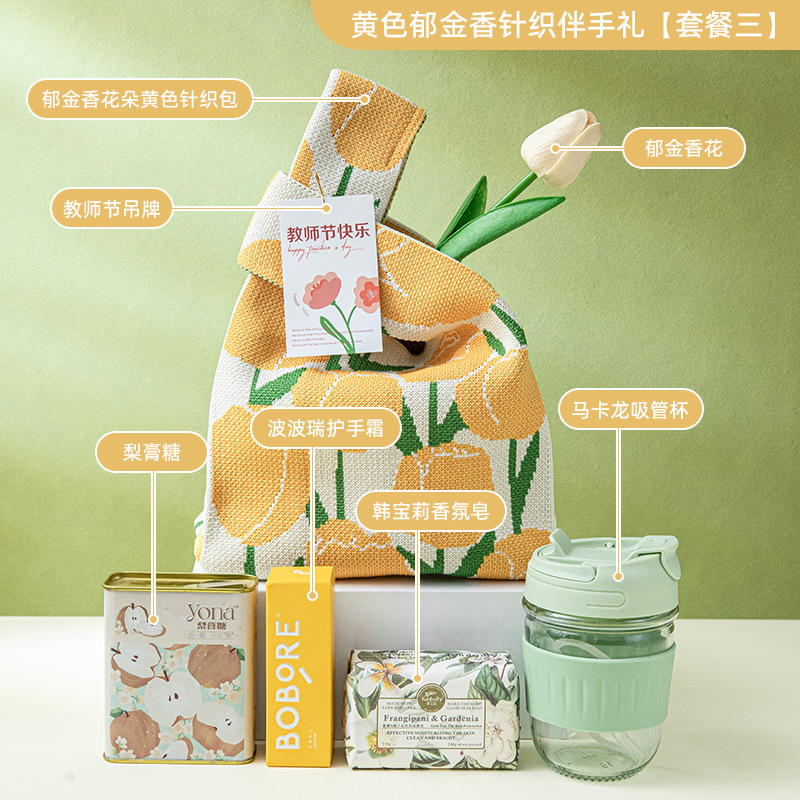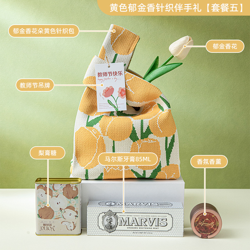 yellow tulip knitted gift [package four]; free size