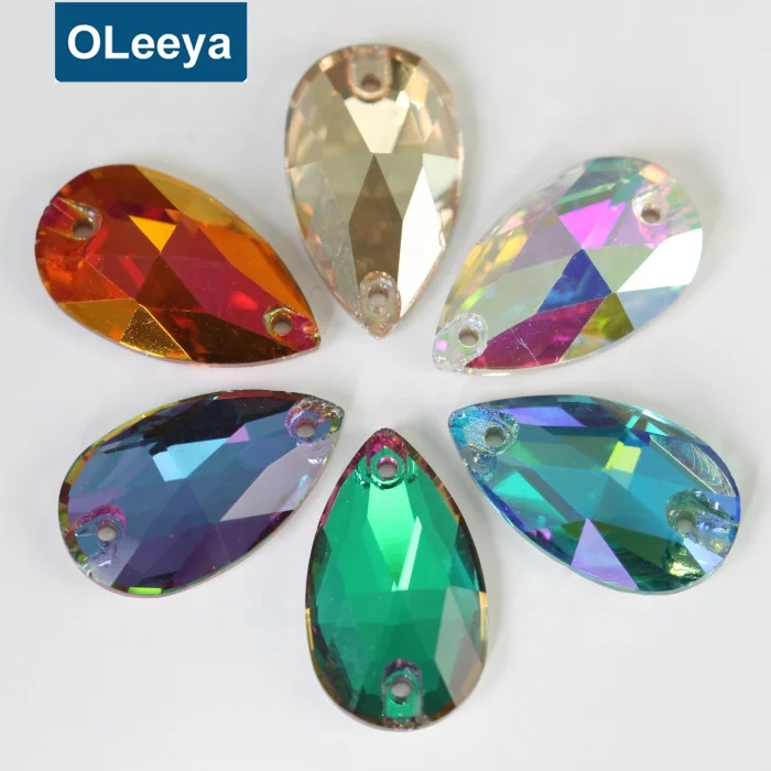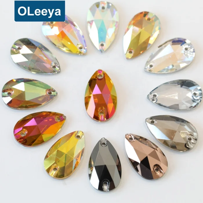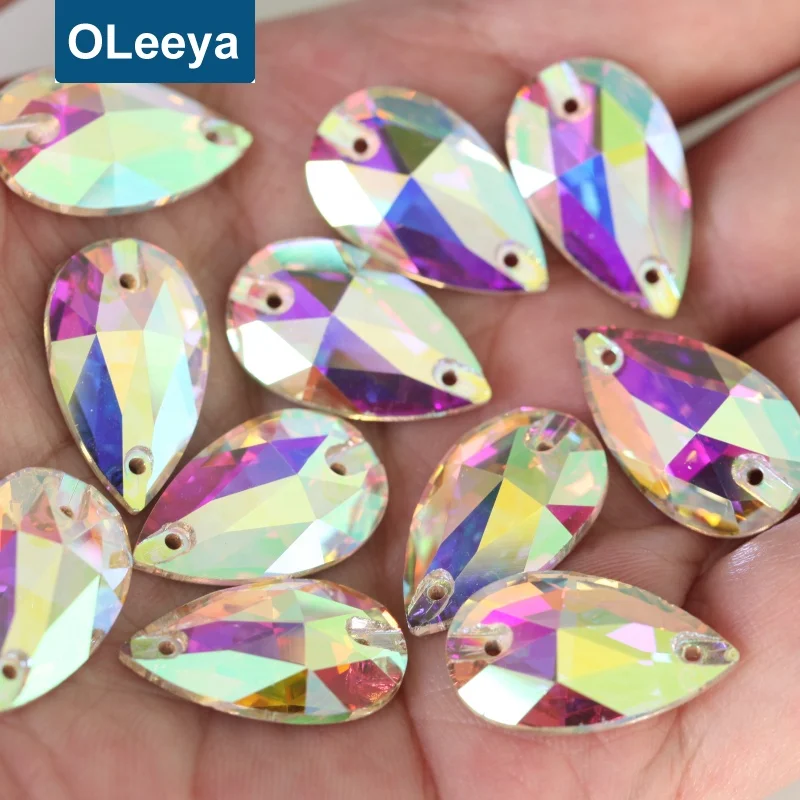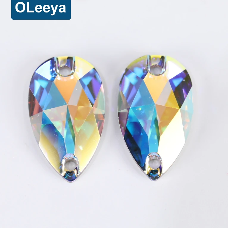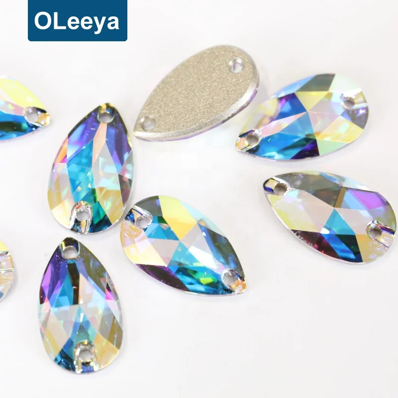 Factory 5A Quality High Shinny Crystal AB Teardrop Glass Sew On Strass for Women Design |