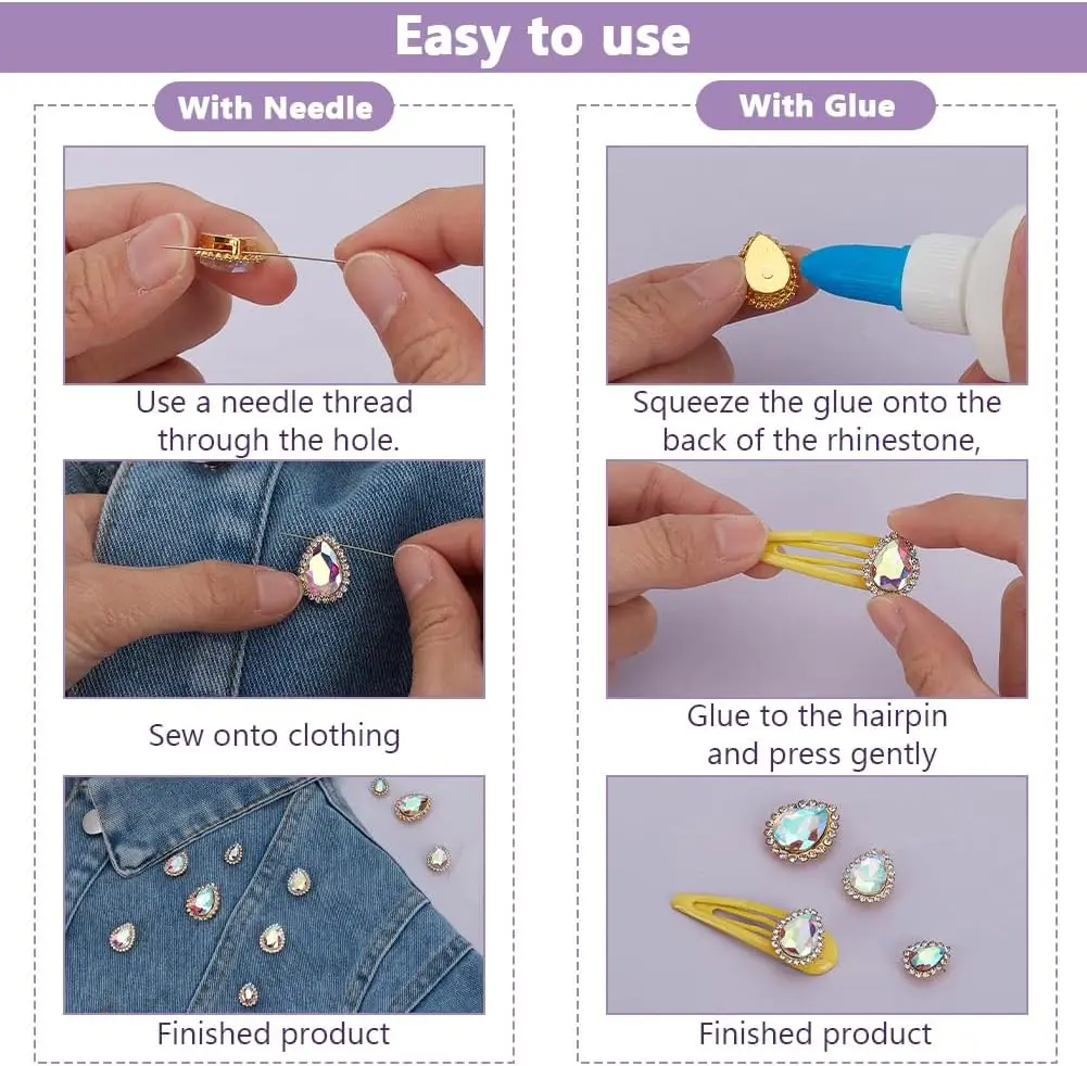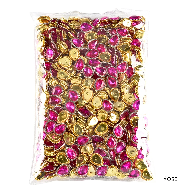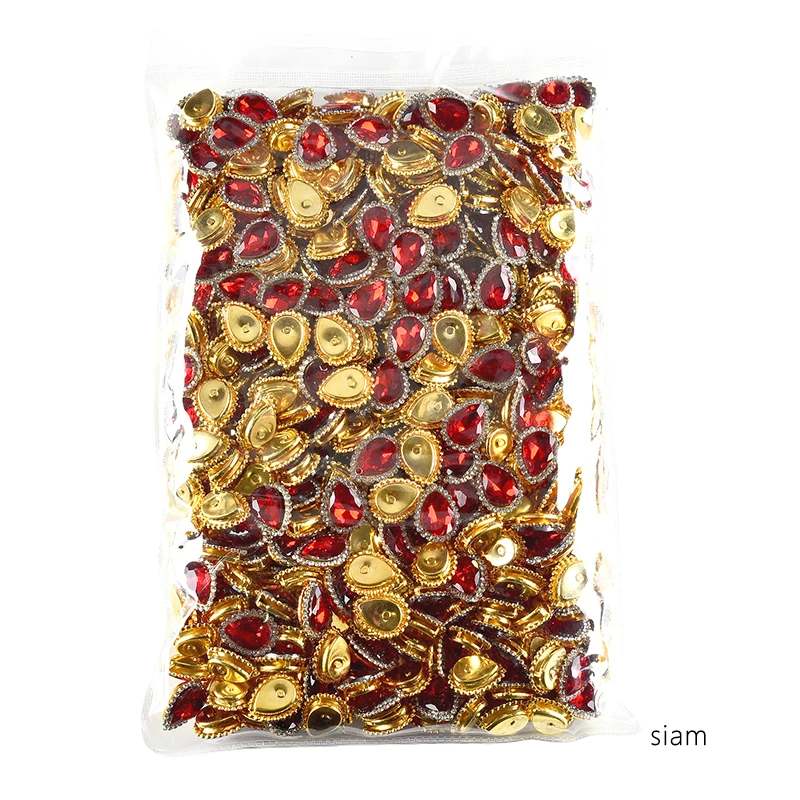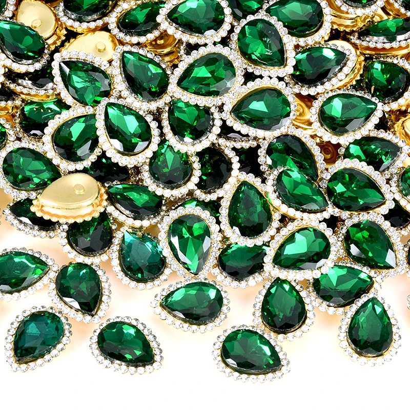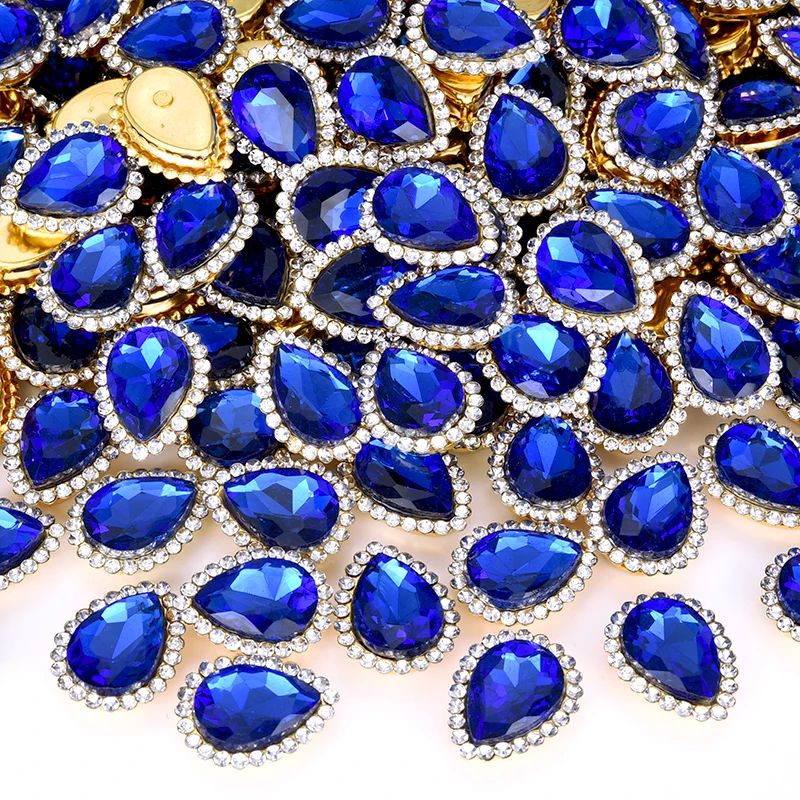 OLeeya High Quality Sunflower Claw Sew on Rhinestones 10*14mm Teardrop Golden Base for DIY Jewelry Crafts