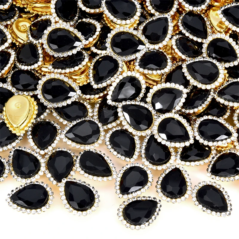 OLeeya High Quality Sunflower Claw Rhinestones 10*14mm Teardrop Golden Base for DIY Jewelry Crafts