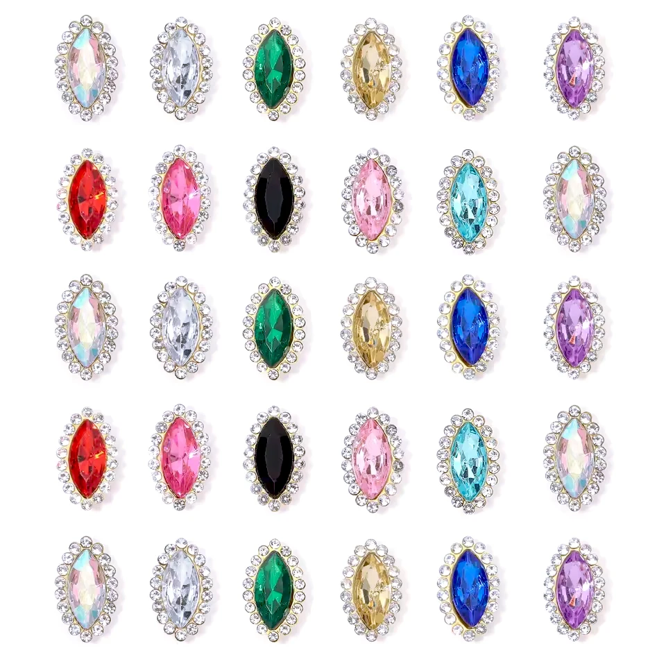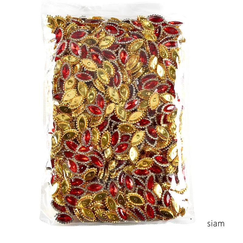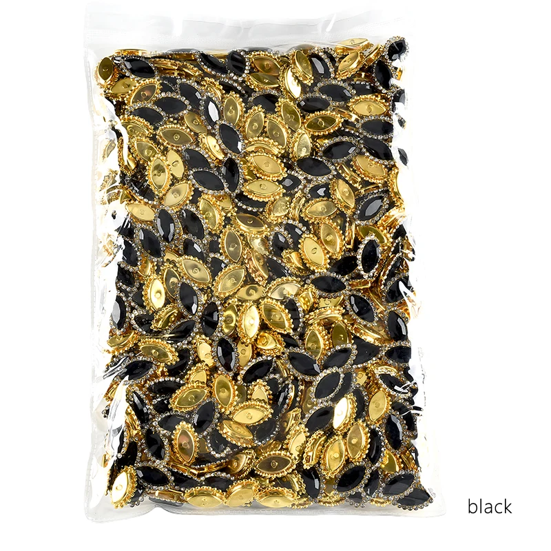 OLeeya 200pcs Shiny Golden Claw Base Horse Eye Glass Rhinestones Sparkling Sewing Stones for DIY Jewelry Earring Pendants