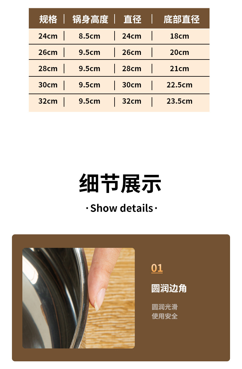 26cm 304 food grade