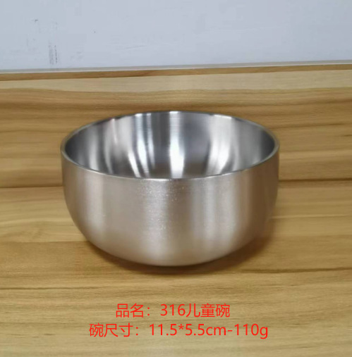 316 kindergarten children anti-scald bowl commercial double-layer anti-scald 304 stainless steel bowl student soup bowl canteen rice bowl