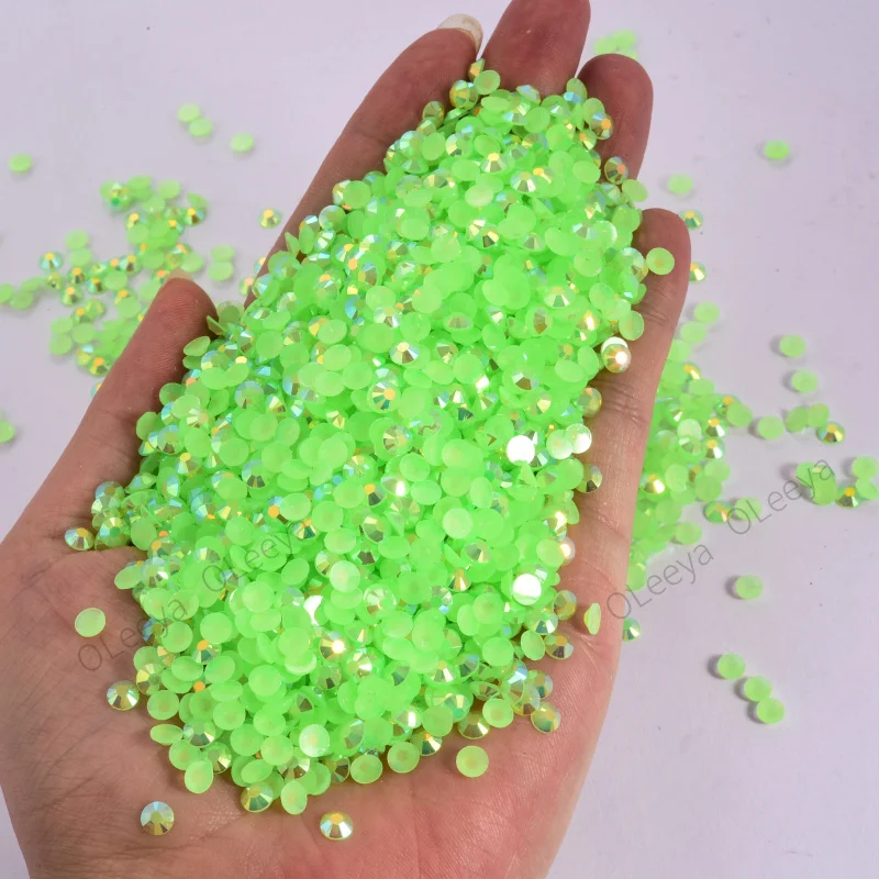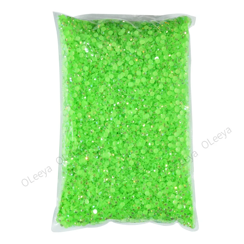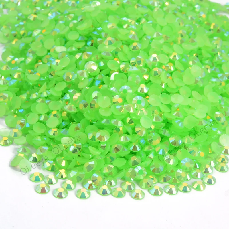 Oleeya Wholesale Jelly Lt. Peridot AB Resin Rhinestones 2mm 3mm 4mm 5mm 6mm Non Hot Fix Flatback Crystal Stones for DIY Crafts