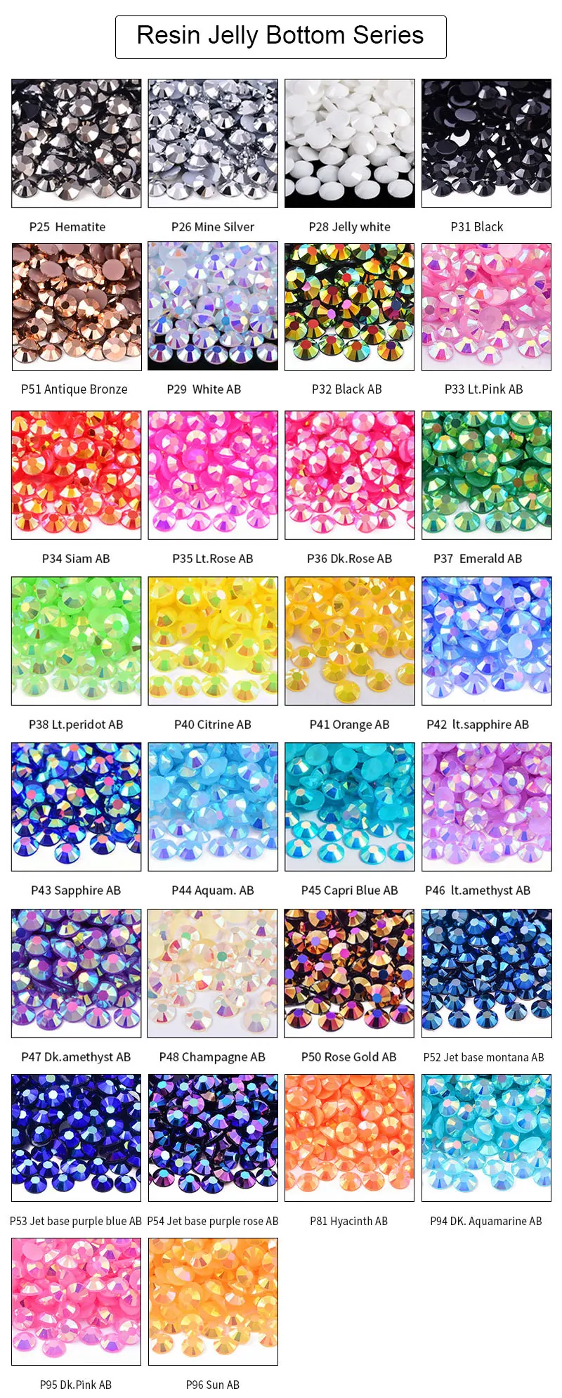 1. Rhinestone in same cut facets and with Jelly bottom flat back