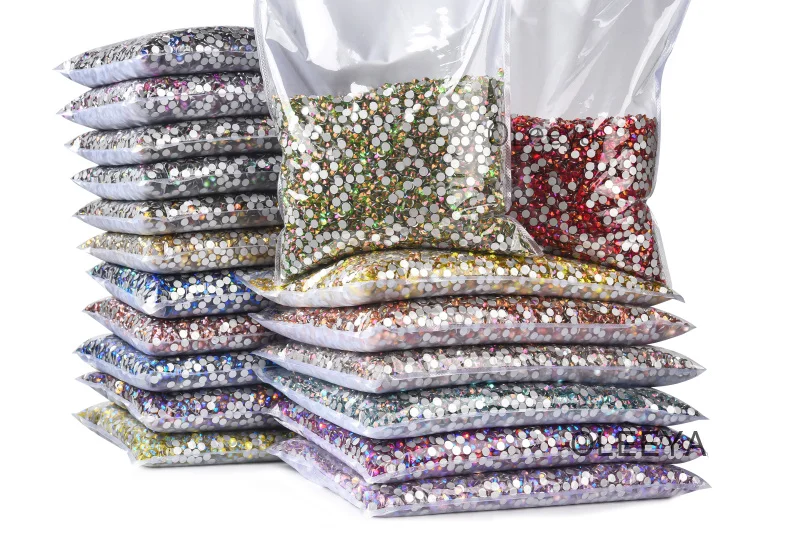 Oleeya Factory Customized Bulk Packing Crystal Flat Back Glass Non Hot Fix Rhinestones 14400pcs for Tumbler Decorations