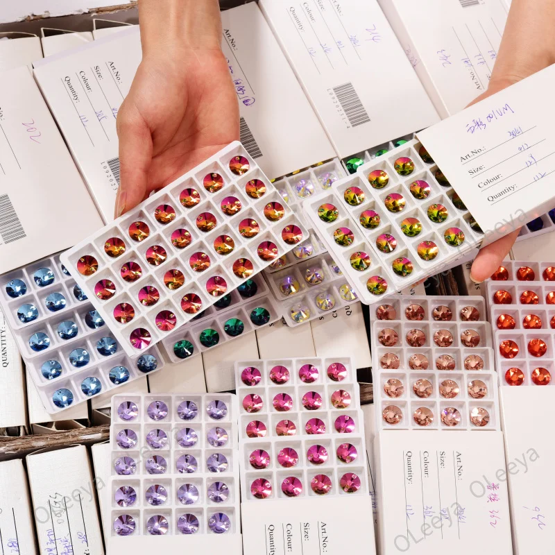 Item | Oleeya Factory Low Price Wholesale 10mm All Size Round Rivoli Shape Resin Flatback Crystal AB Sewing Rhinestones for Clothing |