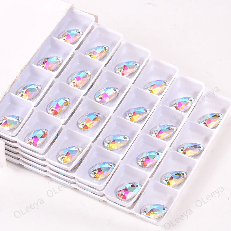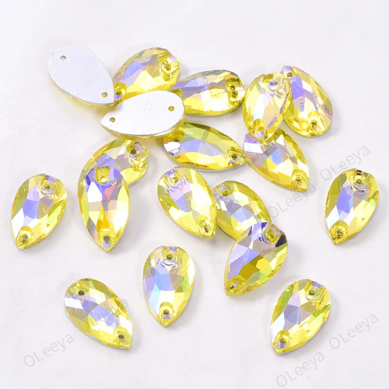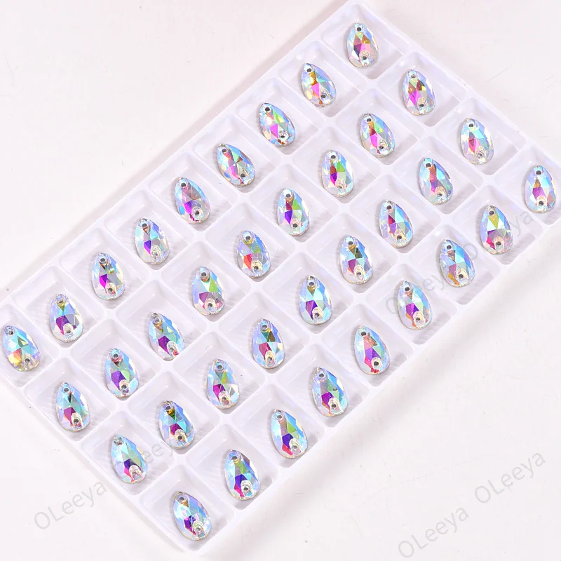Item name | Oleeya Factory Hot Sale High Quality Glass Sapphire 13*18mm Flatback 3A Teardrop Sew on Rhinestones for Wedding Dress |