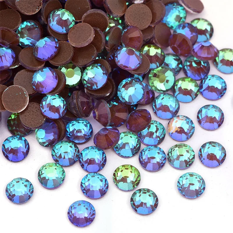 Oleeya SS3-SS30 AB Flat Back Rhinestones Wholesale Non Hot Fix Glass Luminous Nail Art Rhinestone for Glue on Crystal Design