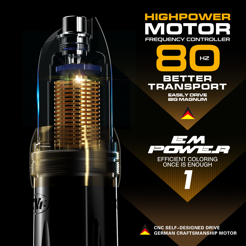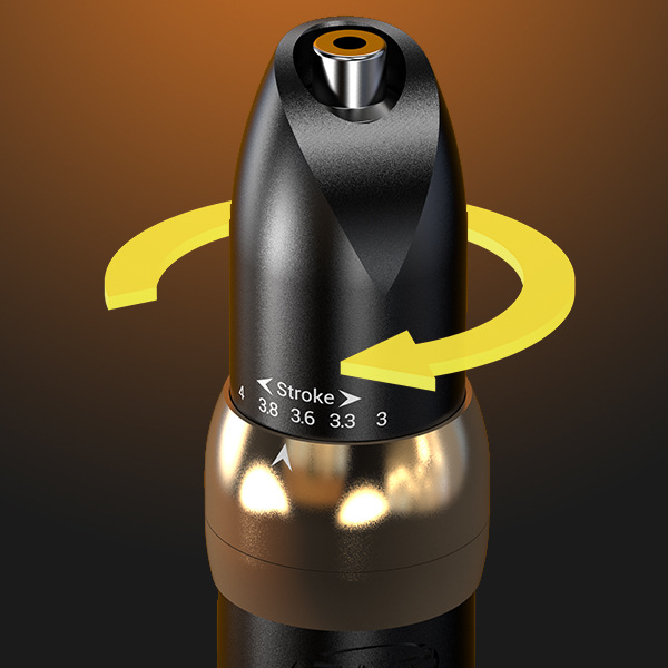 product features: the core drive structure of cnc internal scientific research and invention patents is adopted inside the machine to ensure that the needle travel (3.0 3.3 3.6 3.8 4.0mm) can be adjusted in five gears, the tattoo artist can simply switch the needle travel through the shell according to the color system requirements of the memory pattern. the adjustment process does not need to be powered off and shut down, and the driving sound is quiet and stable.