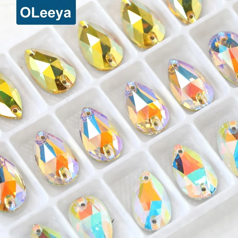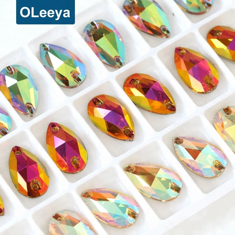 Colorful AAAAA quality 13*18mm pear shape crystal ab sew on gems rhinestone stone for wedding dress bridal gown decorations |