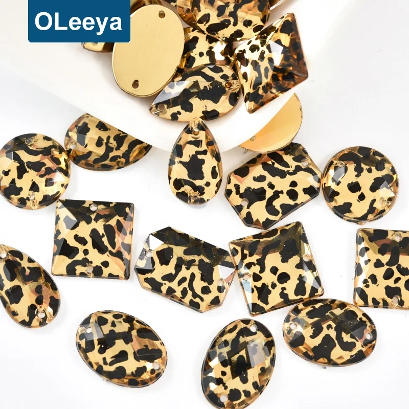 11*18mm Gold Leopard Color Drop Rhinestone Acrylic Flat back Sew On Gems Strass Crystal Stones For Clothes Crafts Decorations