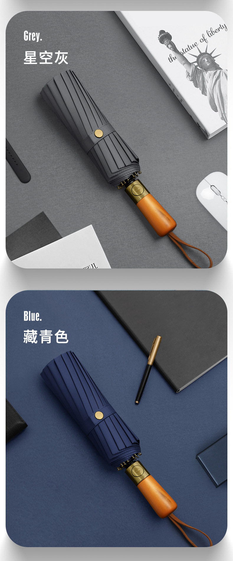 10k wooden handle-navy blue
