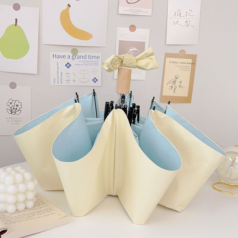 yellow + blue (solid wood handle 8 bone triple folding umbrella)
