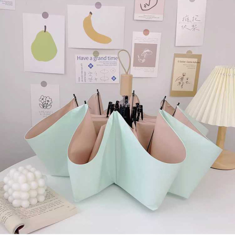 blue + pink (solid wood handle 8 bones triple folding umbrella)