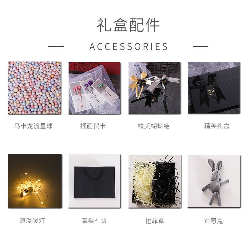 | obsidian black gift box gift bag + yellow grass + light + rabbit | ¥14.8 | 999999 piece available |