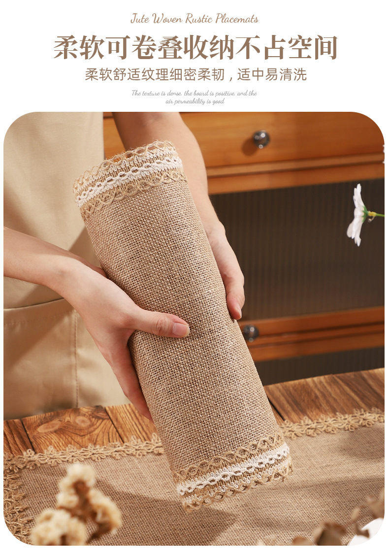 jute woven lace placemat hemp rope lace heat proof mat western-style placemat vintage tassel desktop decorative pad can be sent on behalf