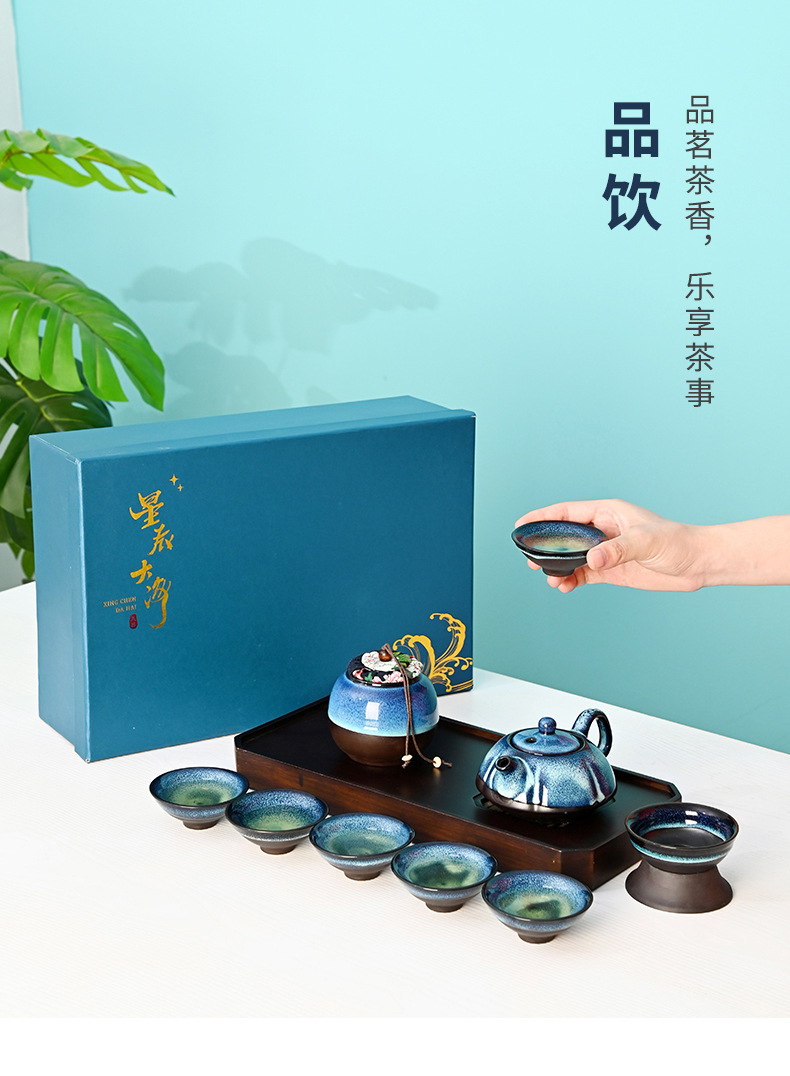 starry glaze_with tea pot 10-head set + big star gift box gift bag
