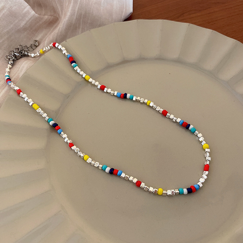 color-colorful beads small pieces of silver necklace