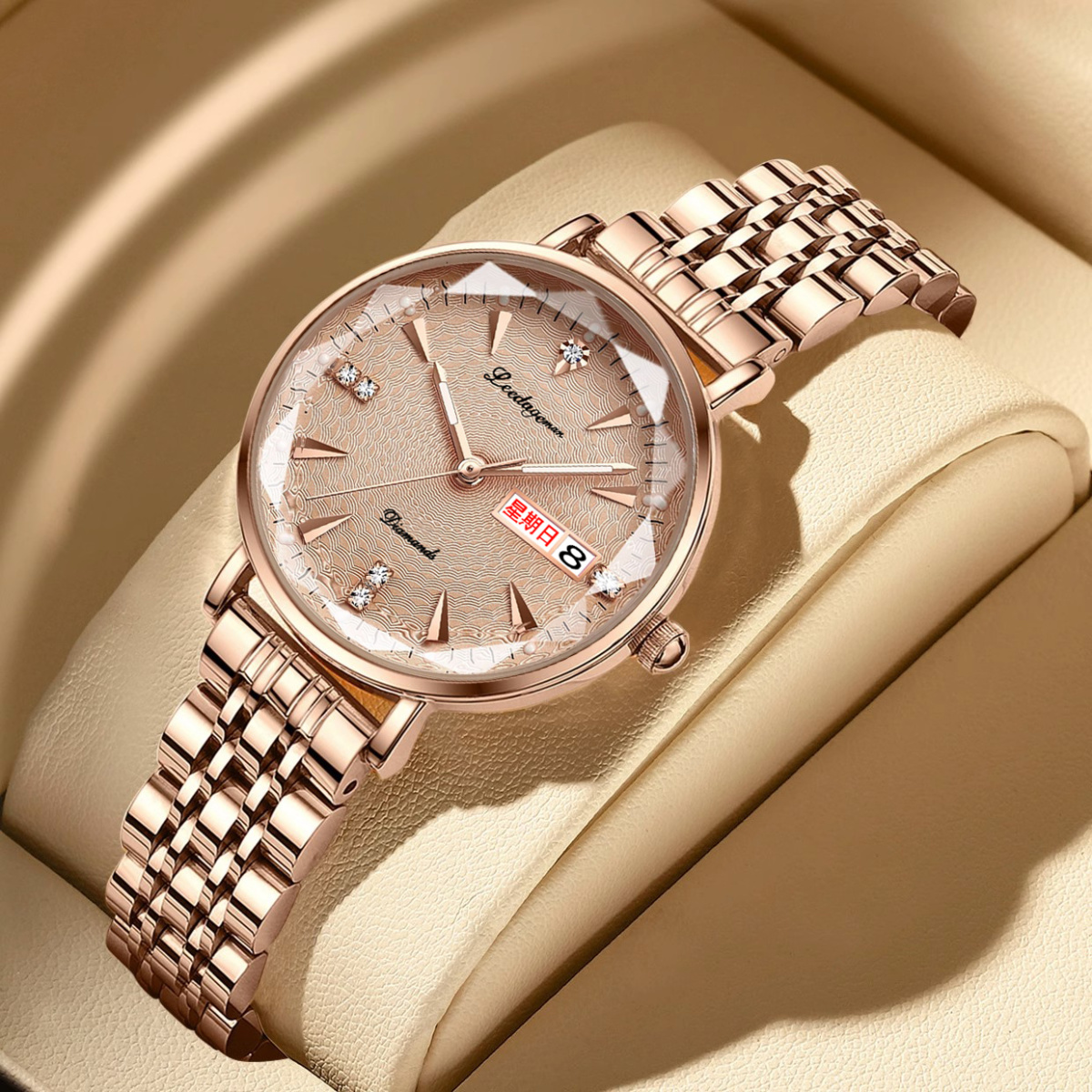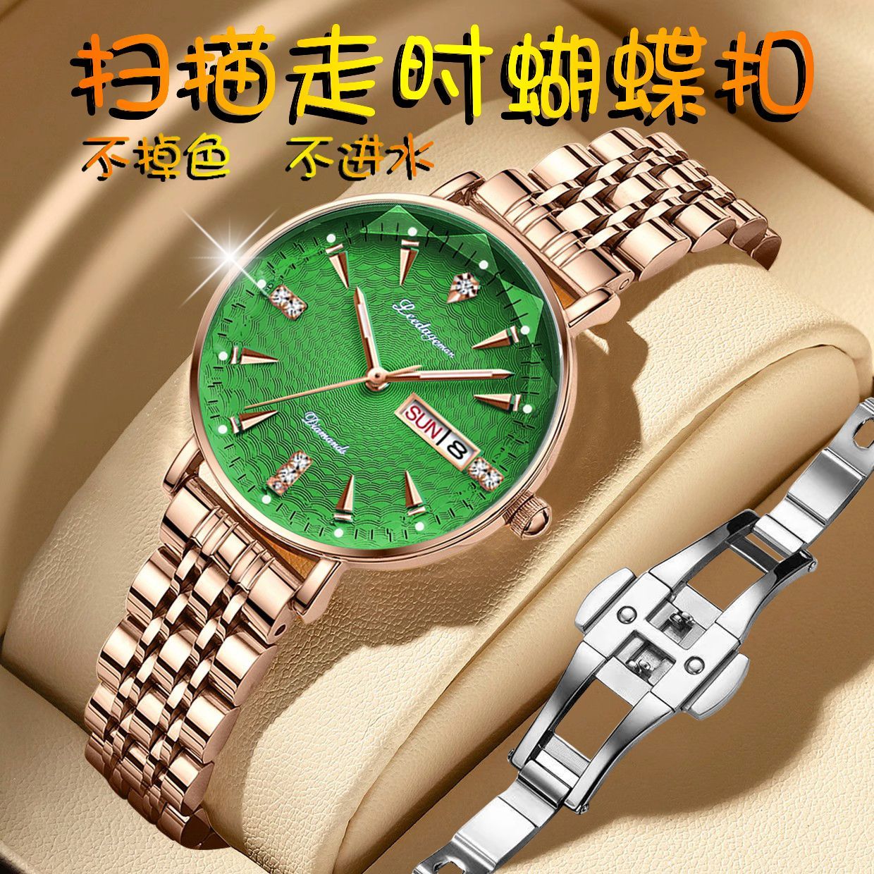 | goddess style women's watch-green surface with belt-diamond glass | ¥85.07 | 999999 piece available |