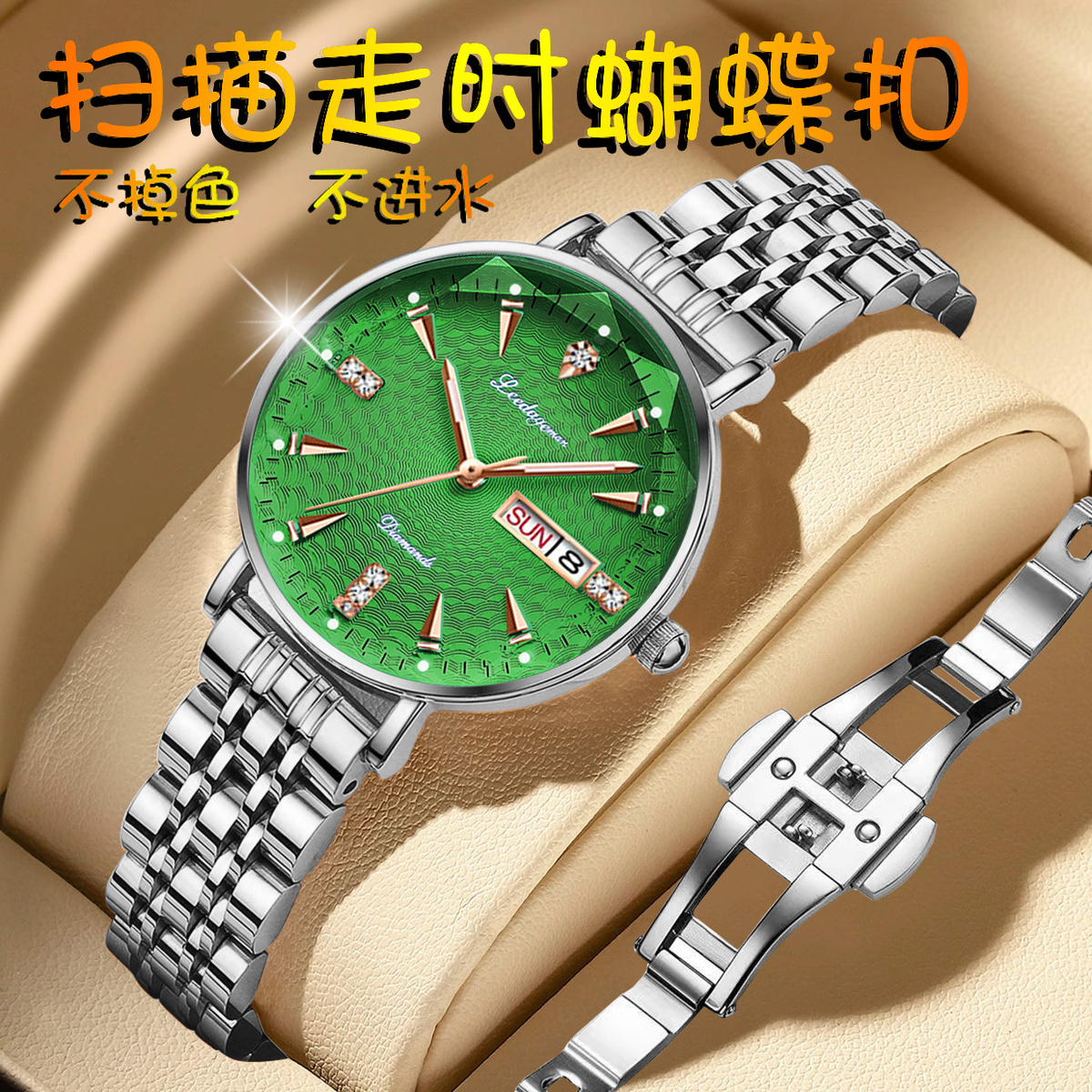 | goddess style women's watch-green surface silver streak-diamond glass | ¥85.07 | 999999 piece available |