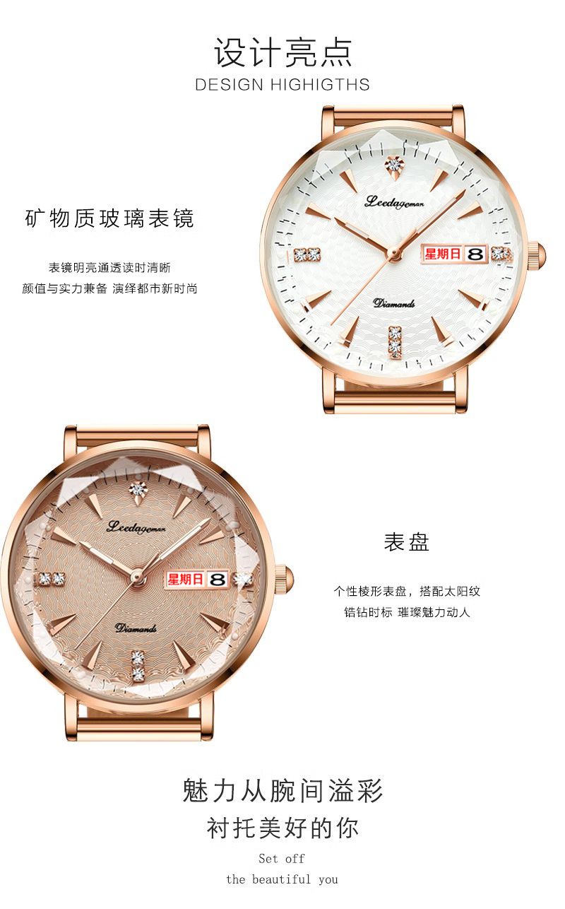 | goddess style women's watch-white surface with belt-diamond glass | ¥85.07 | 999999 piece available |