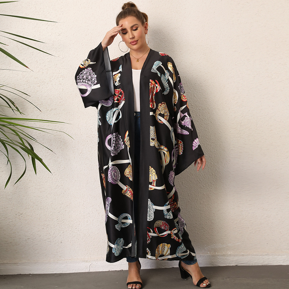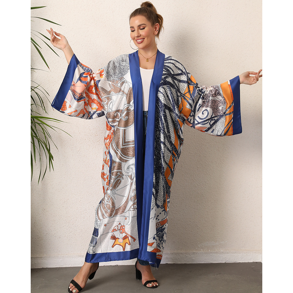 The flat measurement for the garment is 136cm in length, 82cm across the shoulders, and 34cm for the sleeve.