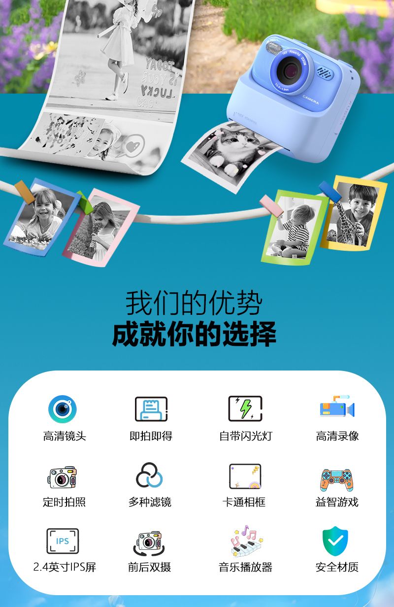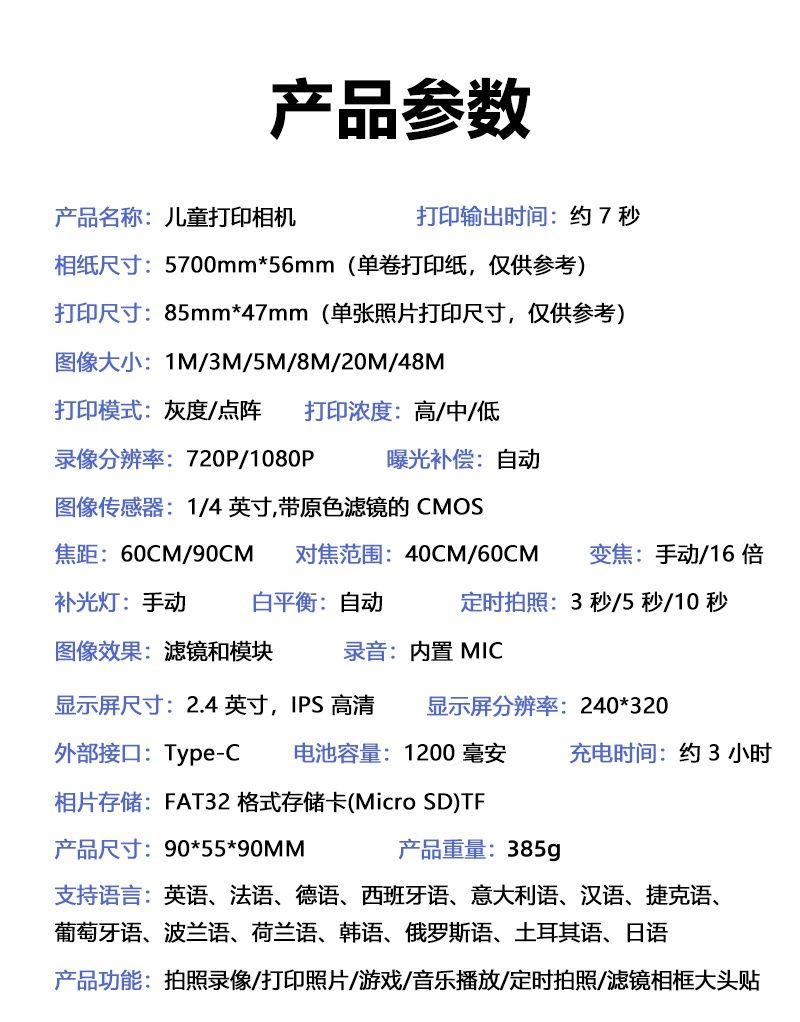 | blue camera +3 rolls printing paper +32g memory card | ¥199.58 | 999999 piece available |