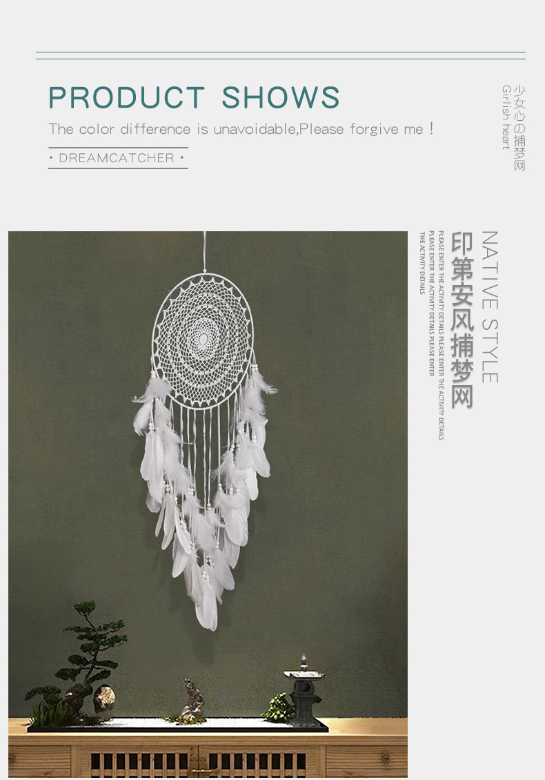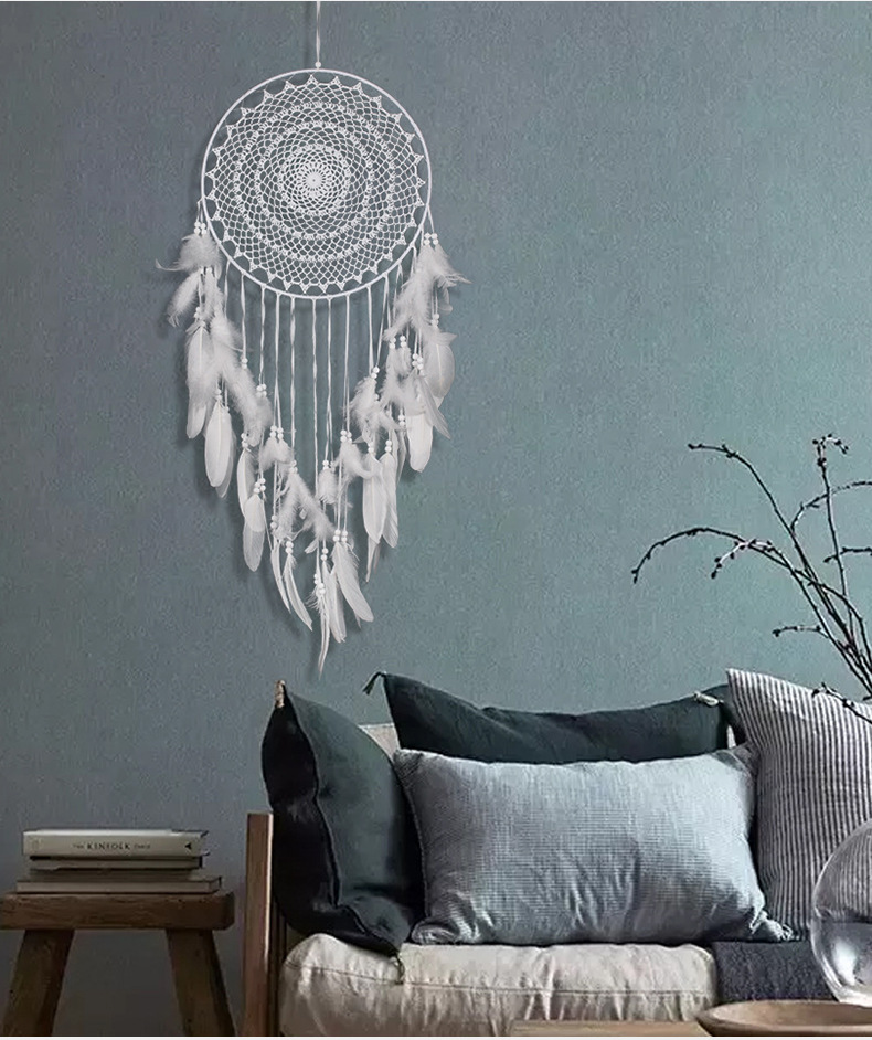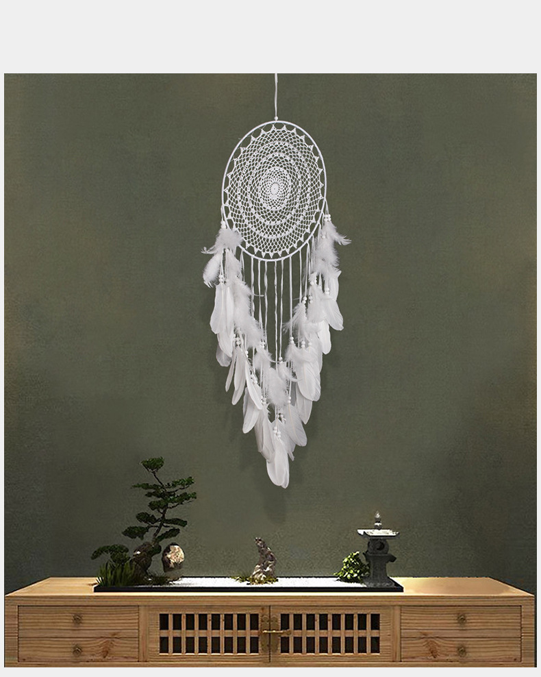 handmade crochet white feather charm dreamcatcher wedding ji live pendant home tv background pendant