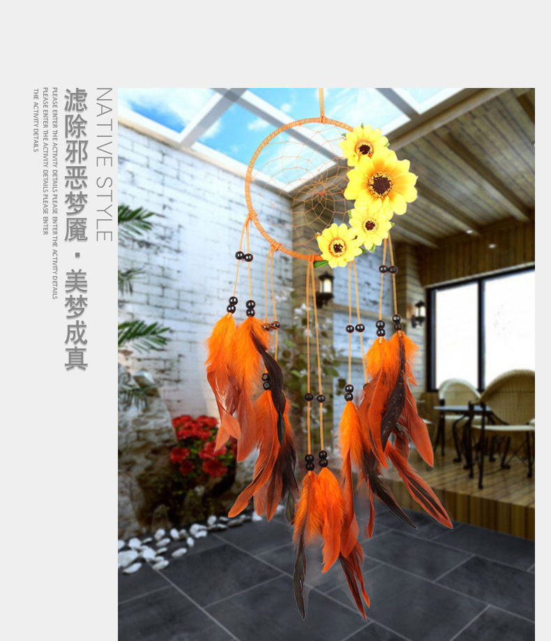 ms6855 new pastoral style dreamcatcher sunflower orange type indoor decorative mural wall hanging feather ornaments