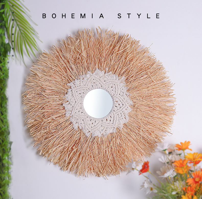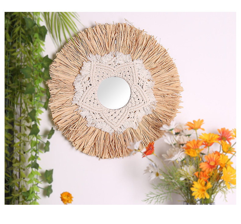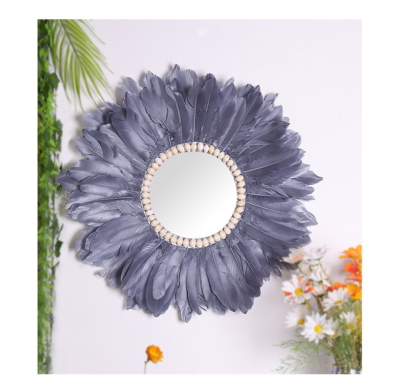 wedding room decorative mirror new house bohemian hand-woven decorative mirror creative background feather decorative mirror